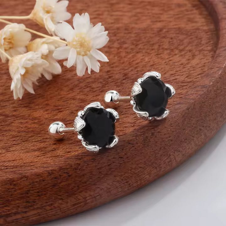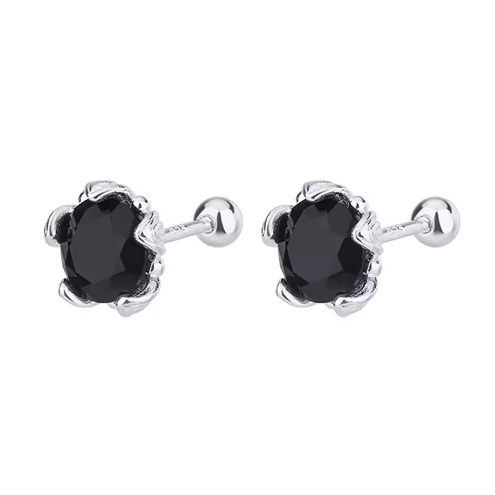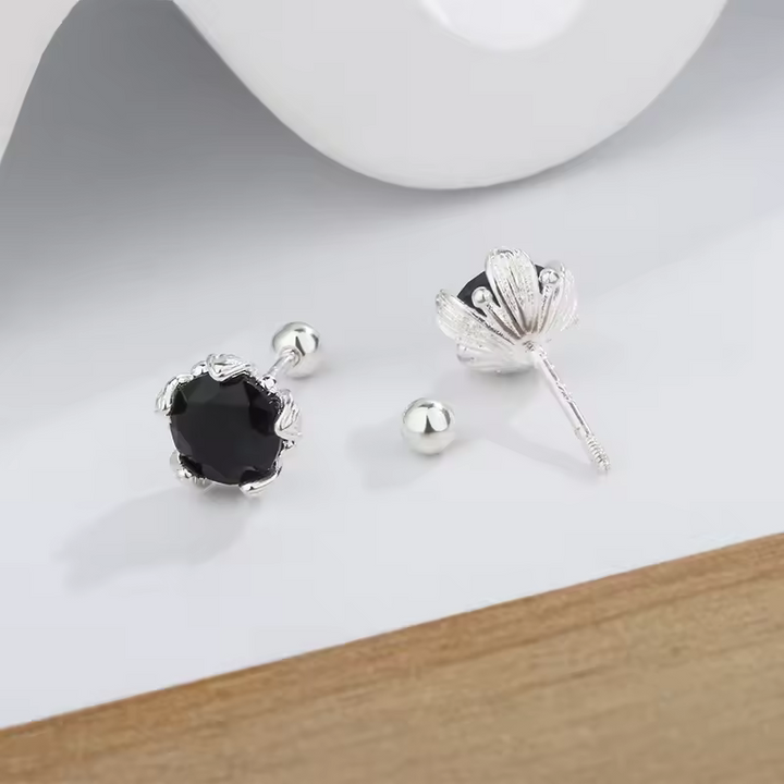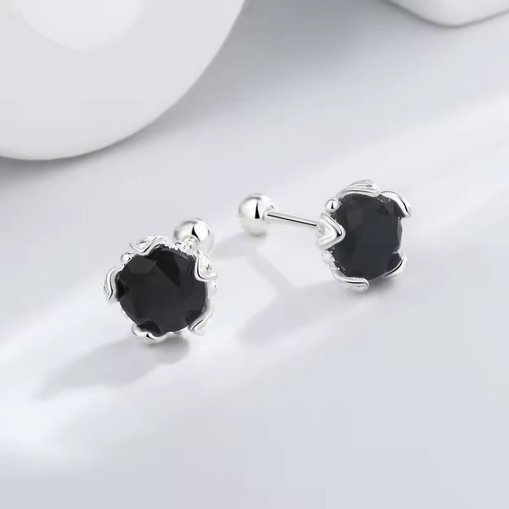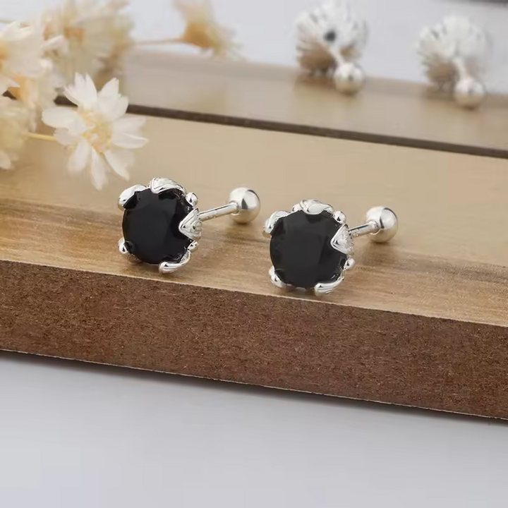 Ohrringe mit schwarzem Zirkonia, Sterling Silber 925, Schraubenverschluss