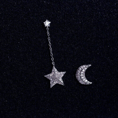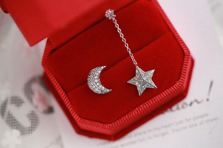 Ohrringe Ohrhänger Mond & Stern Zirkonia Silber 925 Damen Ohrstecker