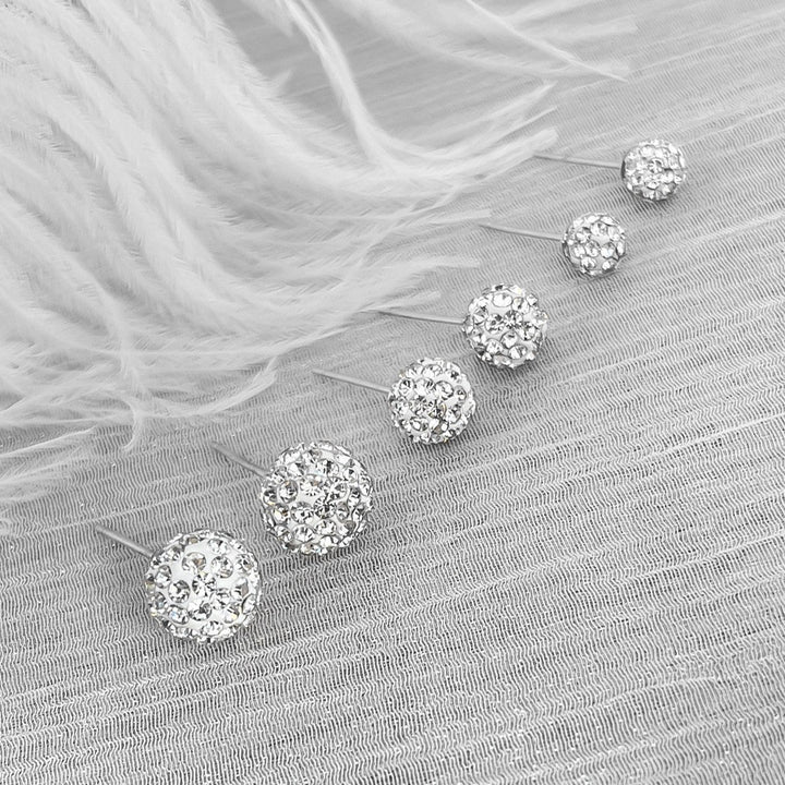 Ohrringe Silber 925 mit funkelndem Strass – Shamballa Ball, 6-8-10 mm