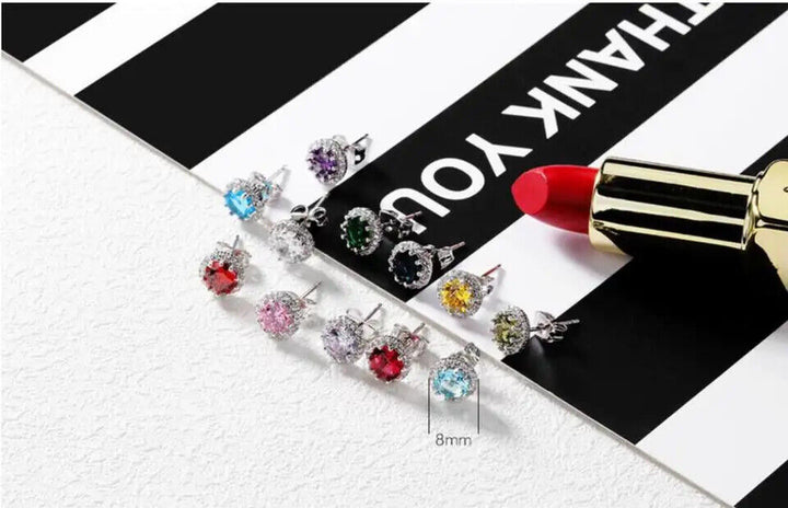 Ohrringe Silber 925 mit Zirkonia Rund Mädchen Ohrstecker 9mm