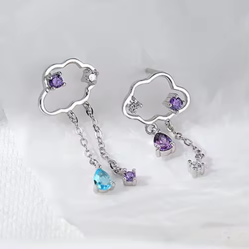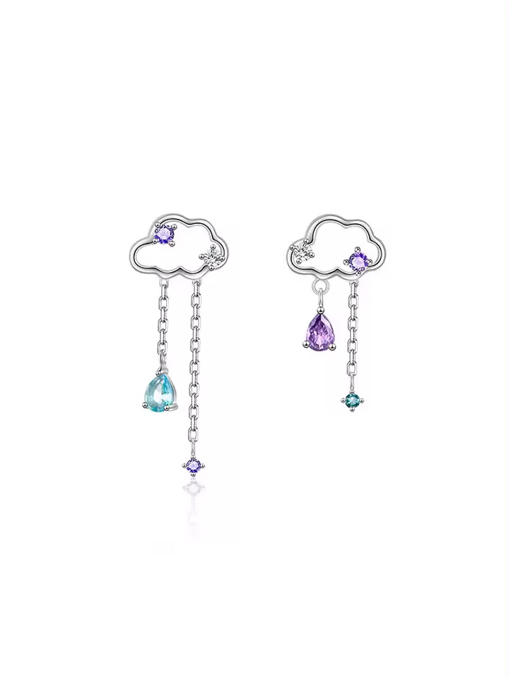 Ohrringe Wolken form m. blauen Zirkonia, Sterling Silber 925, Damen Ohrringe.
