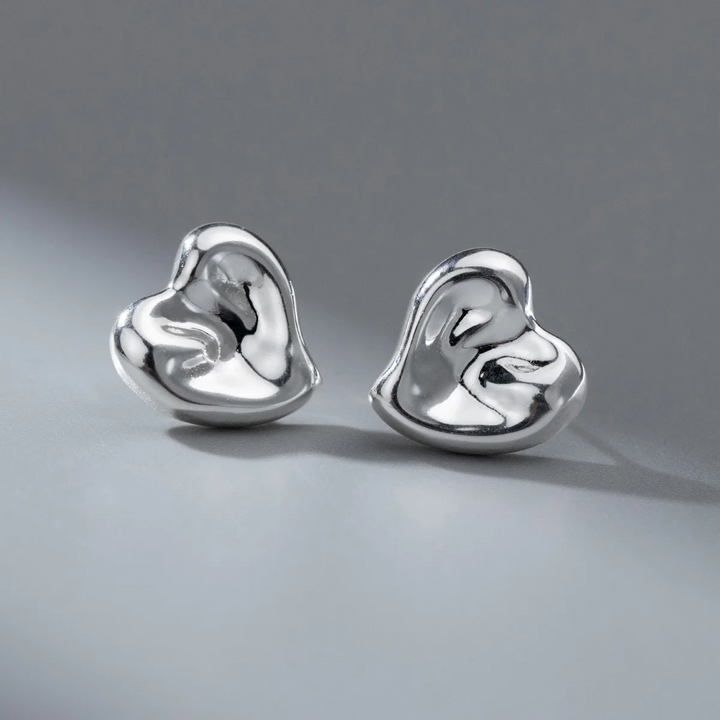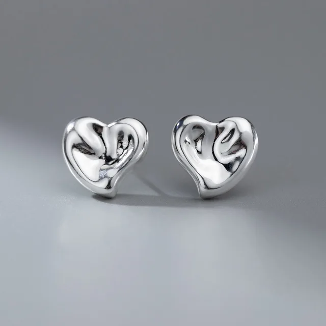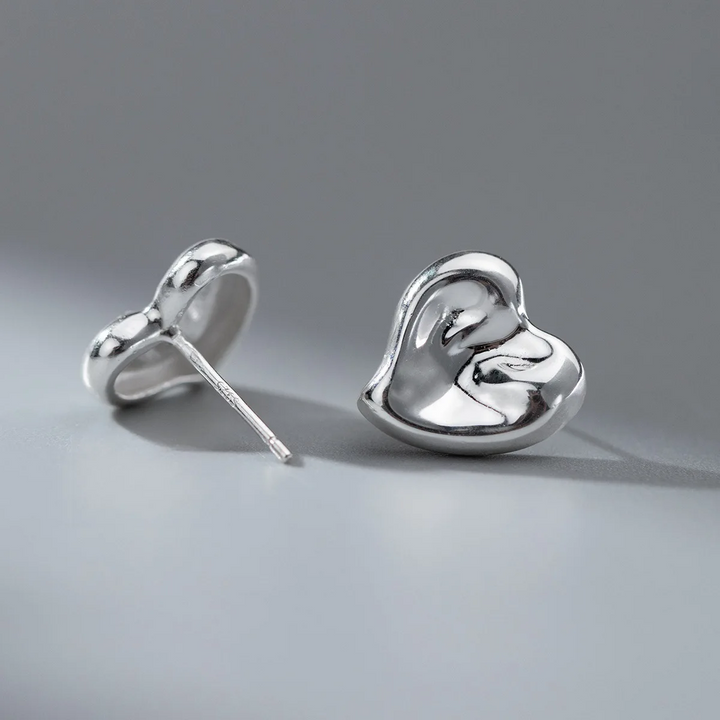 Ohrschmuck Sterlingsilber Damen Ohrringe Glatt Ohrstecker Herz 11 mm