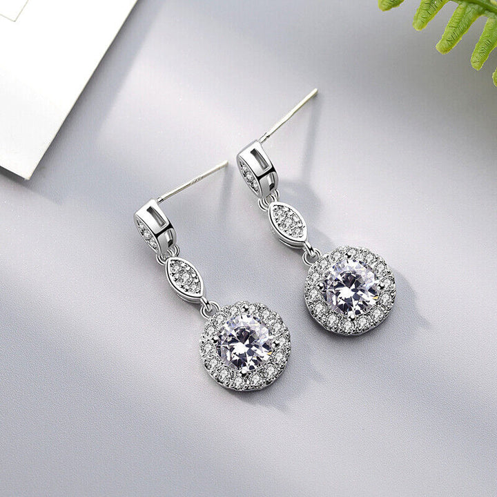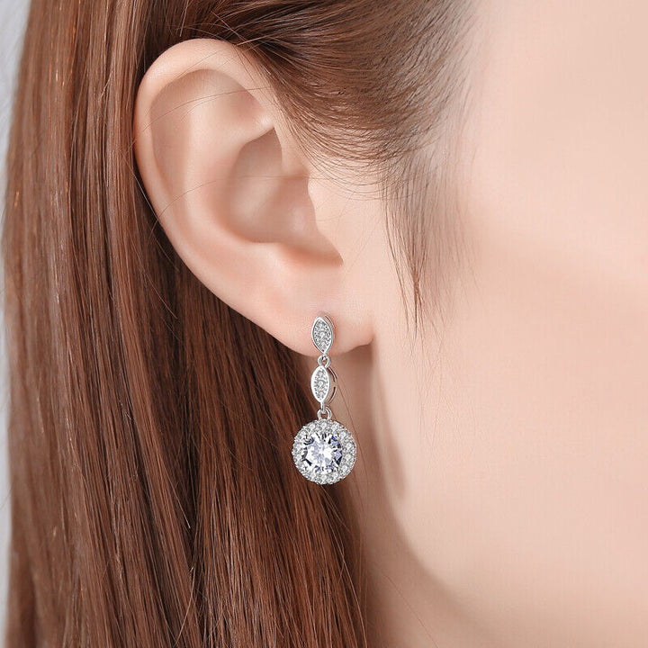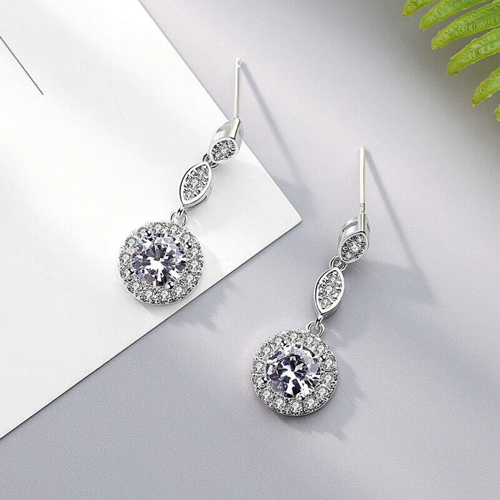 Ohrstecker Anhänger Rund Zirkonia Silber 925 Damen Ohrringe Ohrhänger