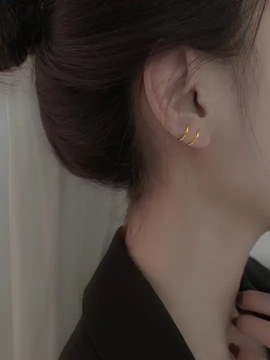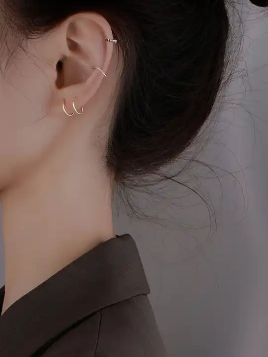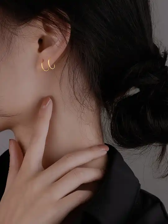 Ohrstecker Doppelreihen Sterling Silber 925 Damen Ohrringe Silber-Gold.