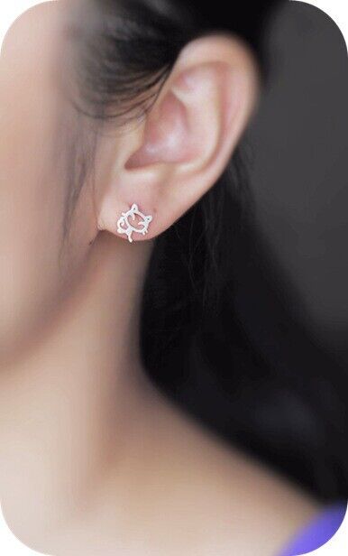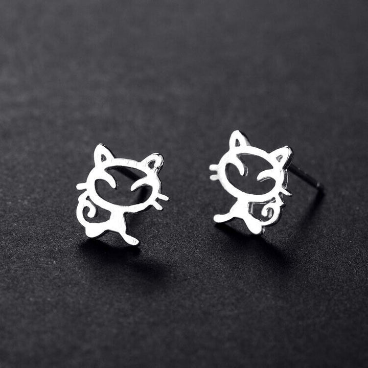Ohrstecker Silber 925 fröhliche Katze Damen Kinder Ohrringe