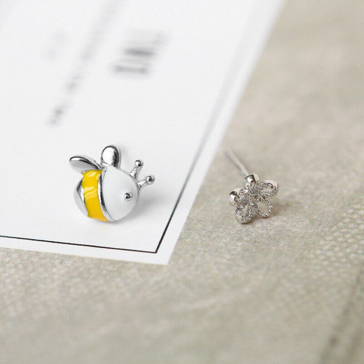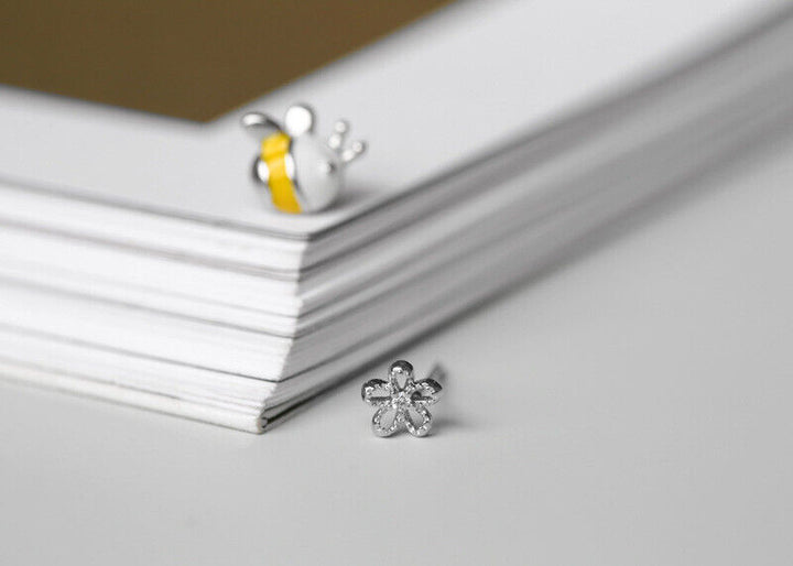 Ohrstecker Sterling Silber 925 Biene Blume Damen Ohrringe