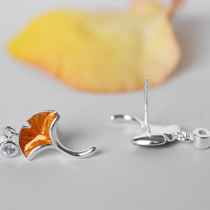 Ohrstecker Ginkgo Blatt Sterling Silber 925 Damen Ohrringe