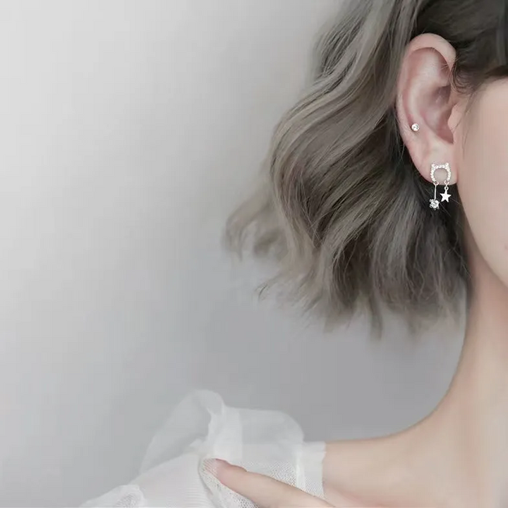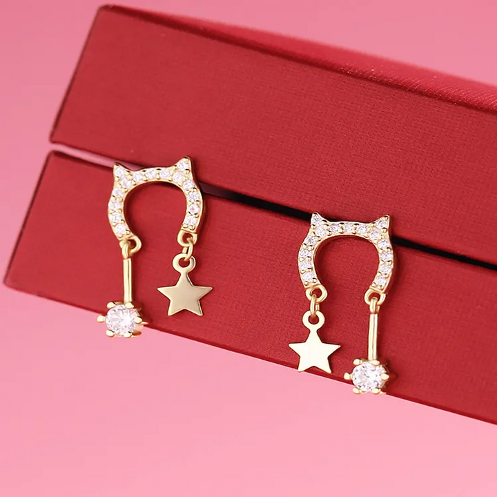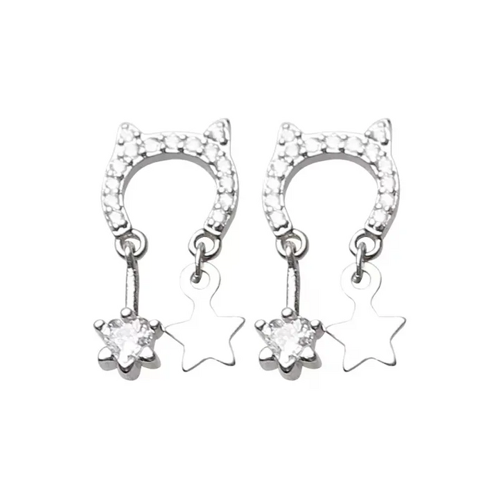 Ohrstecker Katze Sterling Silber 925 Zirkonia Stern Ohrringe Damen Kinder