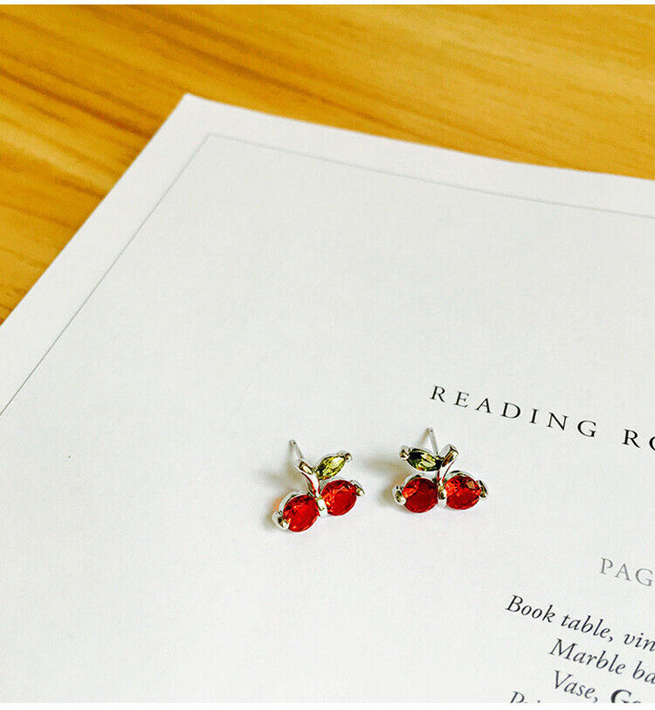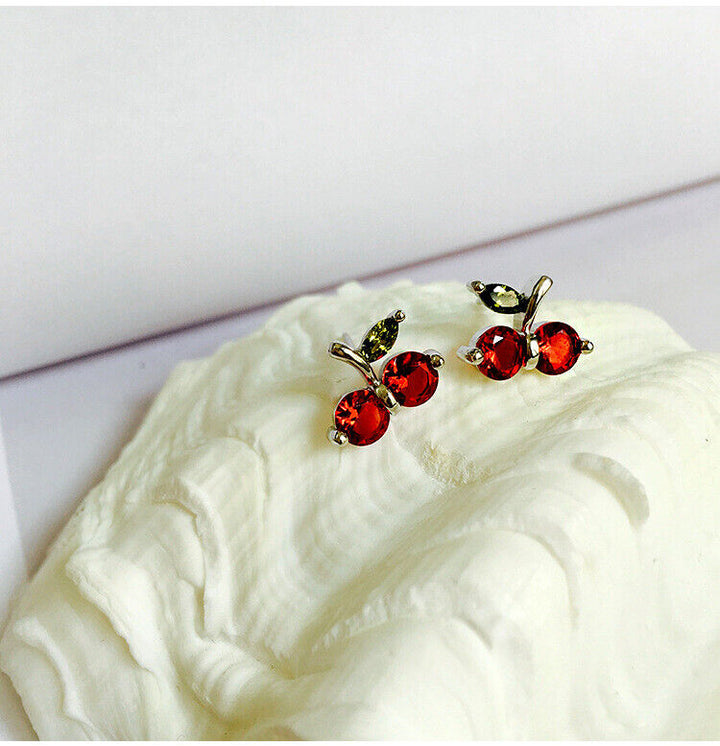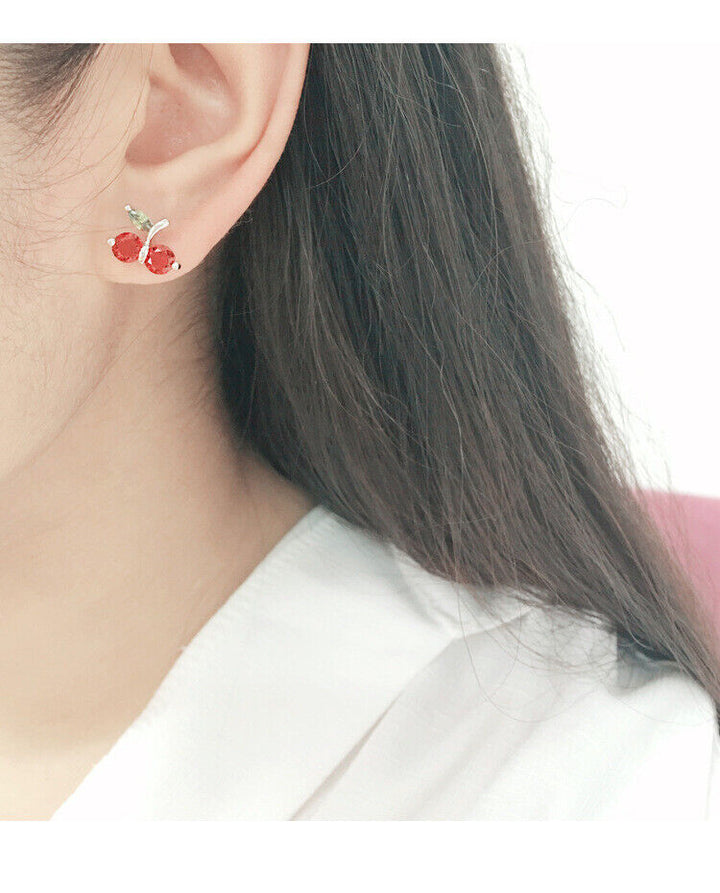 Ohrstecker Kirsche Silber 925 Zirkonia rot Ohrringe Damen Mädchen