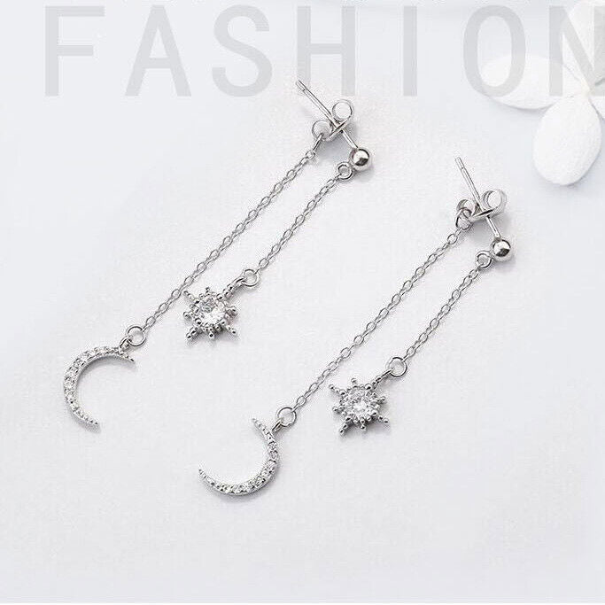 Ohrstecker Langekette Silber 925 Stern-mond Damen Ohrringe