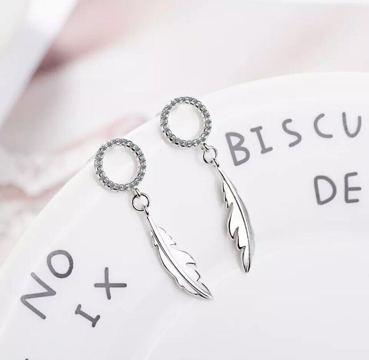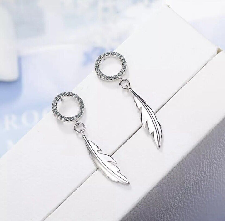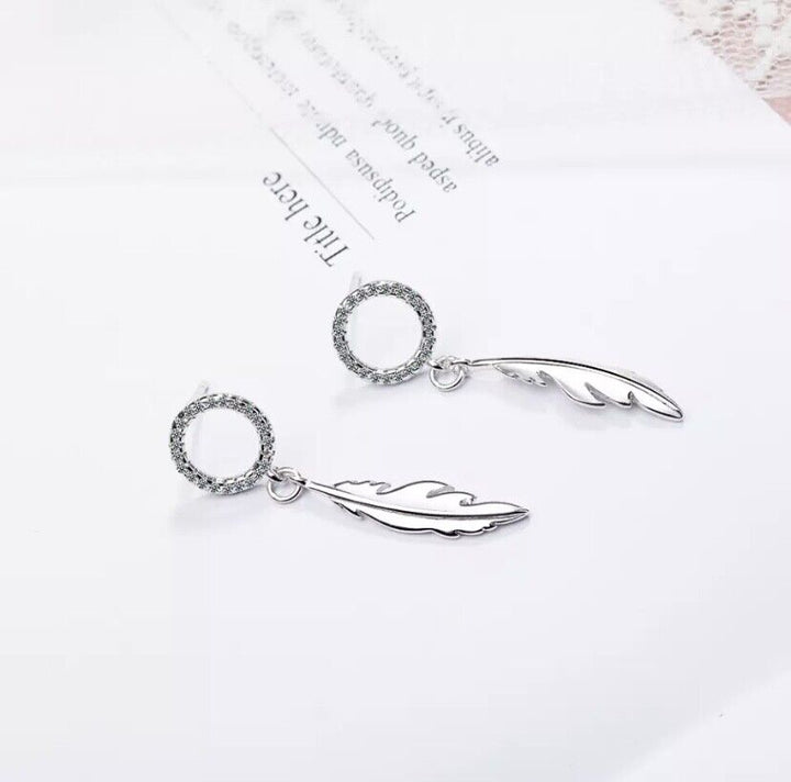 Ohrstecker mit Anhänger Feder Zirkonia Silber 925 Damen Ohrringe
