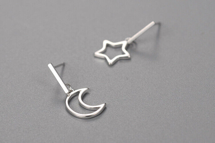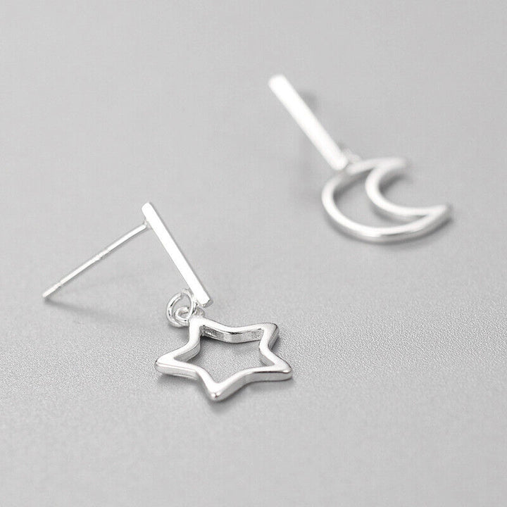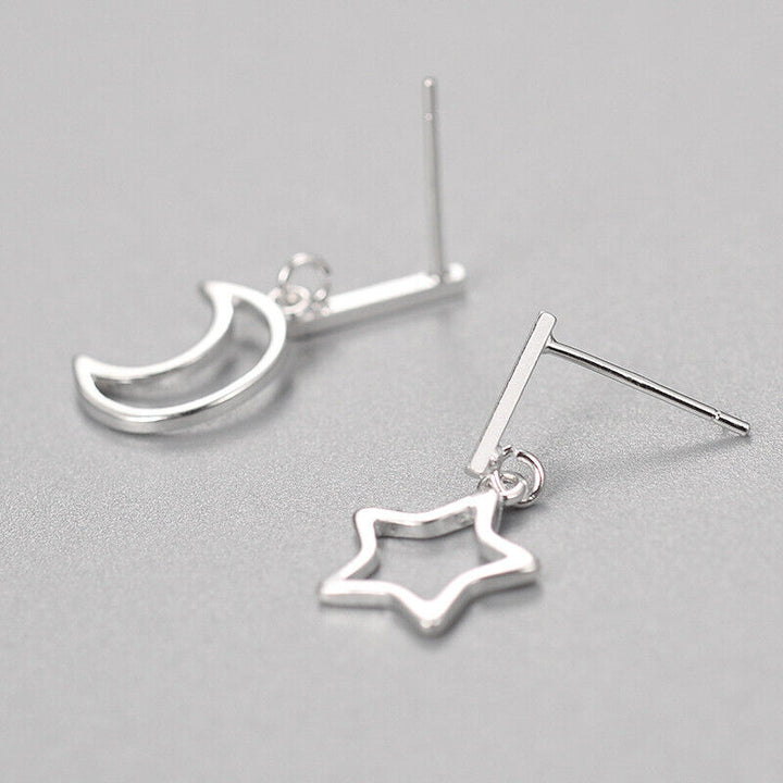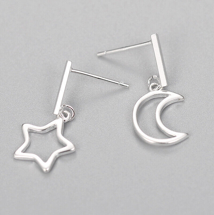 Ohrstecker mit Anhänger Stern Mond Silber 925 Damen Ohrringe Ohrhänger