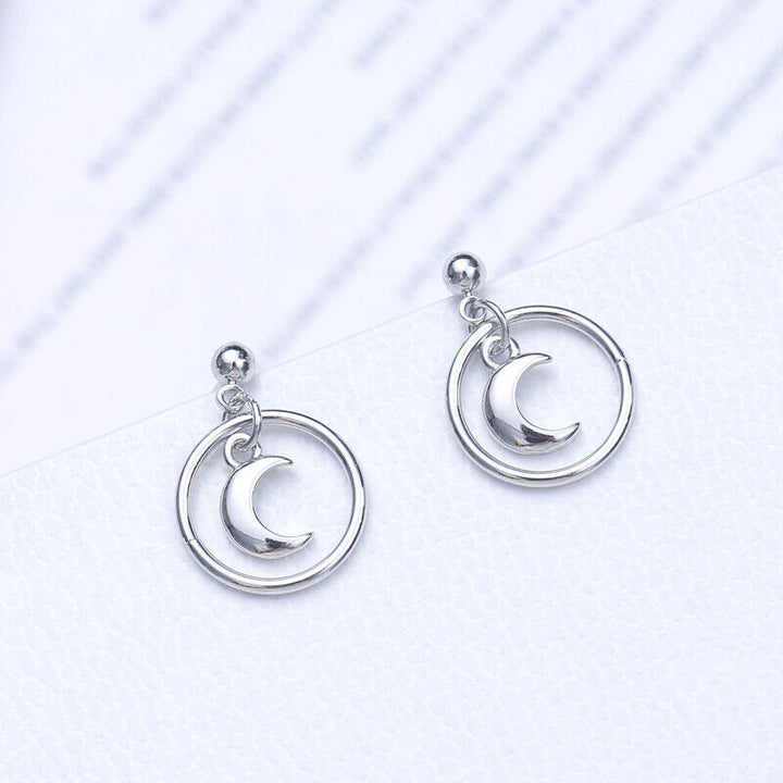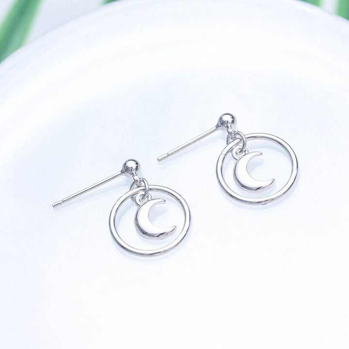 Ohrstecker mit Mond Anhänger Silber 925er Damen Mädchen Ohrringe