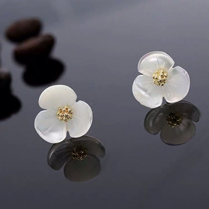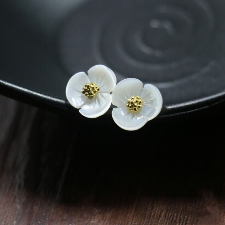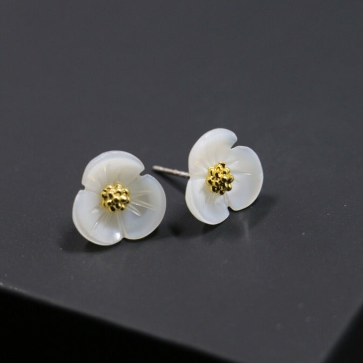 Ohrstecker Perlmutt Blume Sterling Silber 925 Damen Ohrringe 9mm