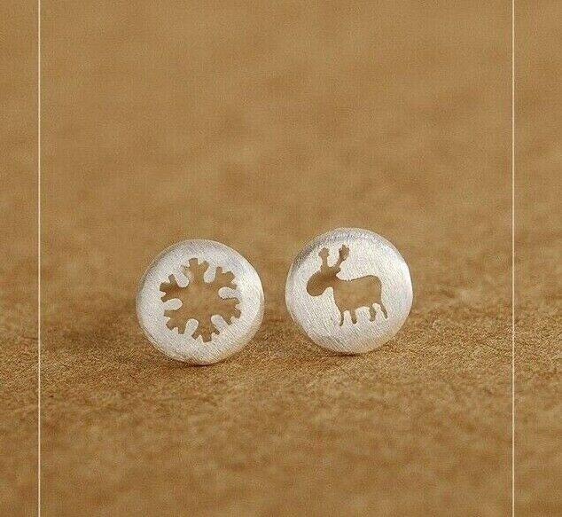 Ohrstecker Schneehirsch Sterling Silber 925 Winter Damen Ohrringe