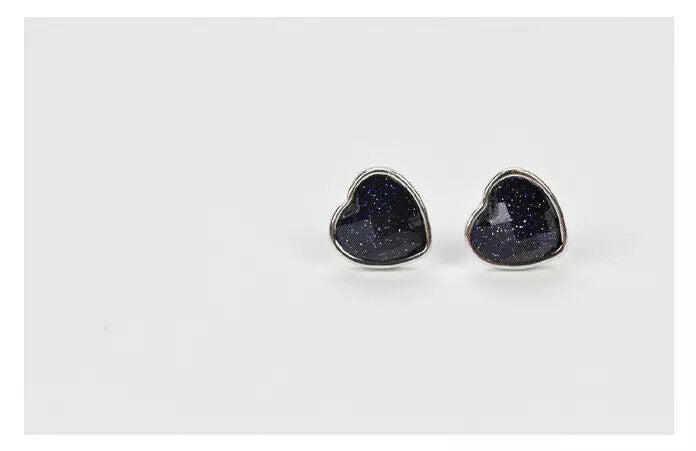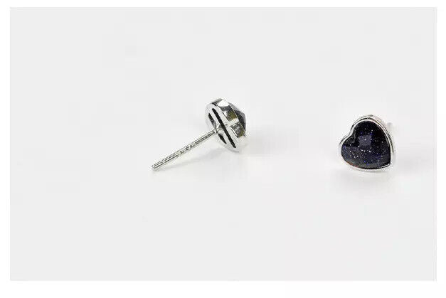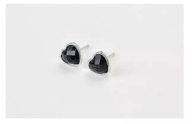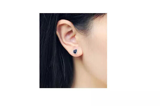 Ohrstecker Schwarz Opal Herz Silber 925 Mädchen Ohrringe