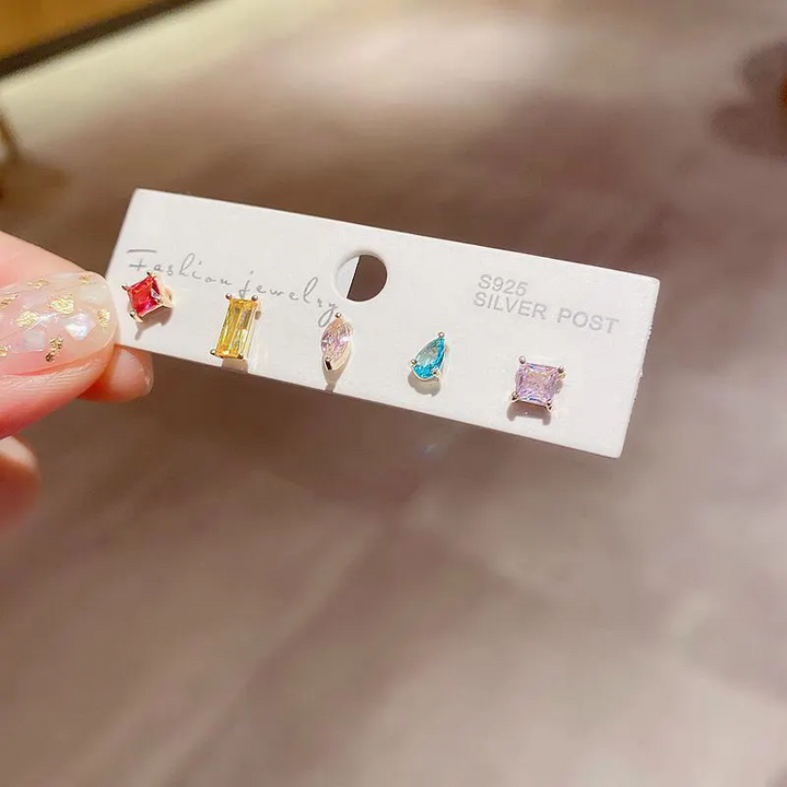 Ohrstecker Set5 Stück Zirkonia Sterlingsilber 925 Damen Multi Farbe Ohrringe