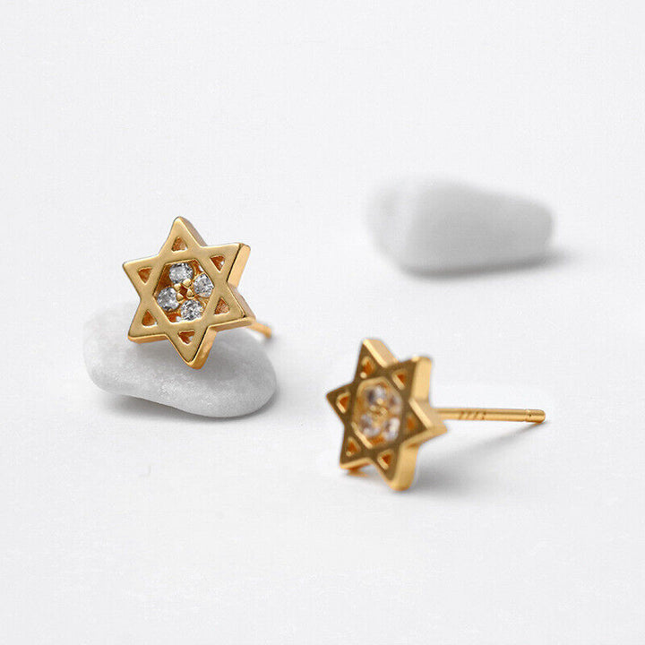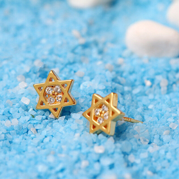 Ohrstecker Stern Sterling Silber 925 Damen Goldfarbene Ohrringe