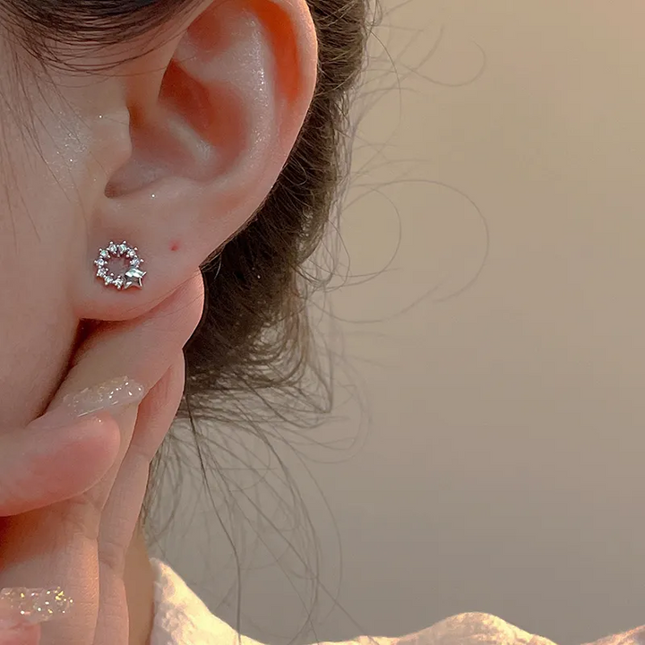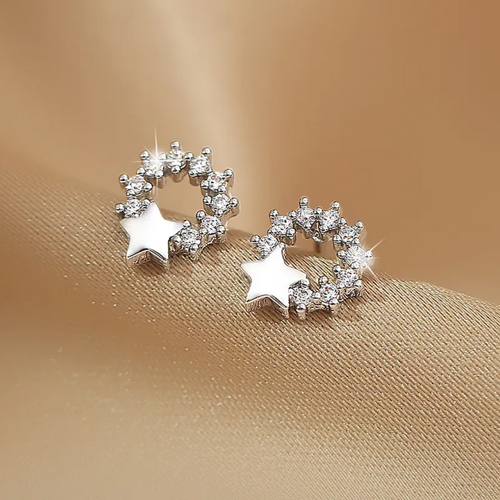 Ohrstecker Stern Kranz Sterling Silber 925 Zirkonia Damen Mädchen Ohrringe