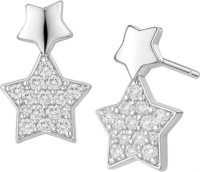 Das doppelte Stern-Design kombiniert eine schlichte, glänzende Sternbasis mit einem funkelnden Zirkonia-Sternanhänger – ein echter Hingucker für jede Gelegenheit.