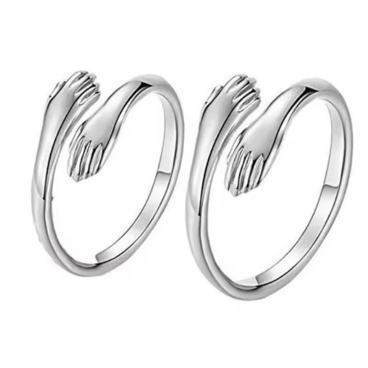 Parnierring für Damen und Herren, Love Embrace Verlobung, Sterling-Silber 925, größenverstellbar.