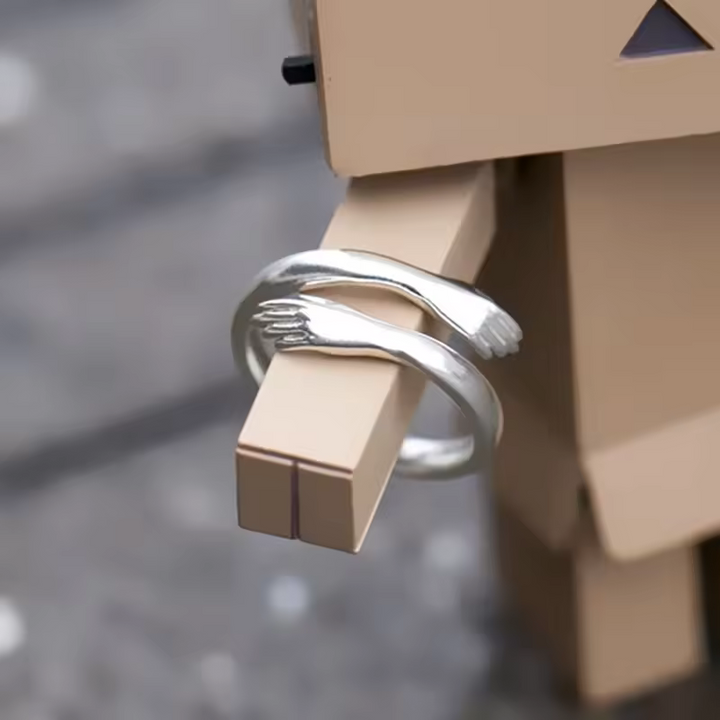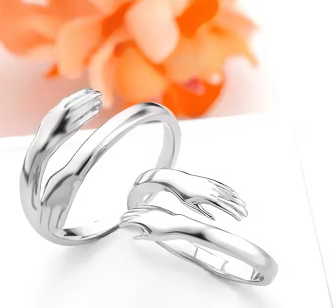 Parnierring für Damen und Herren, Hand Love Embrace Verlobung, Silber 925,