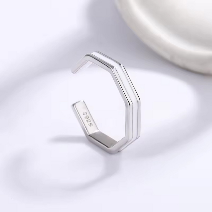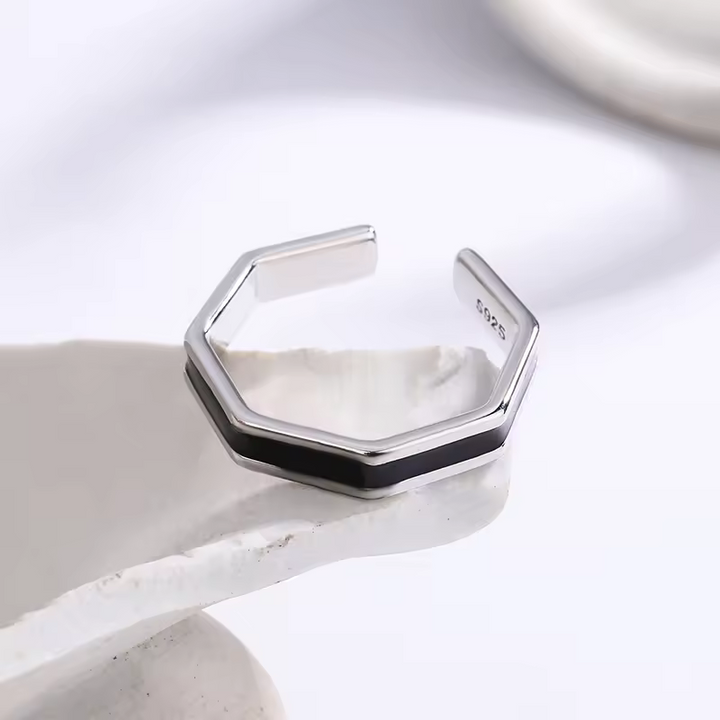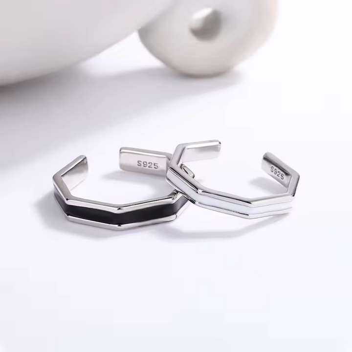Partnerring-Set für Damen und Herren, weiß-schwarz, Silber 925, glatt, Offen