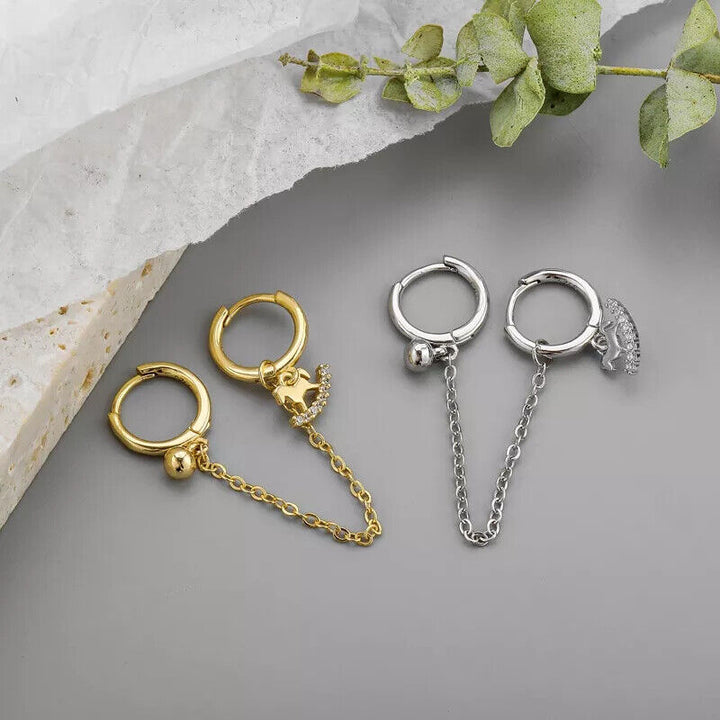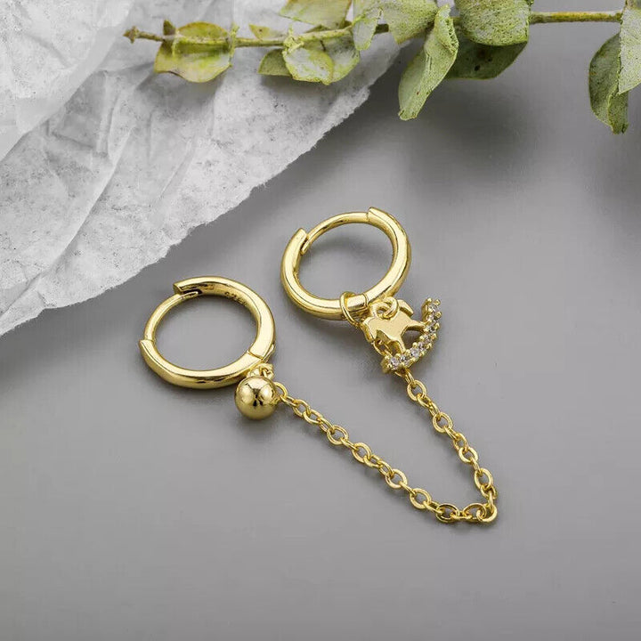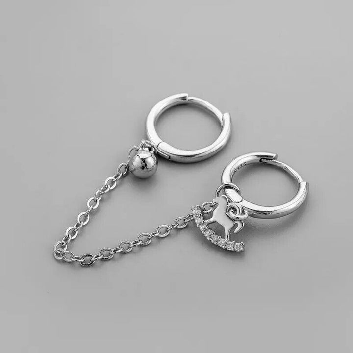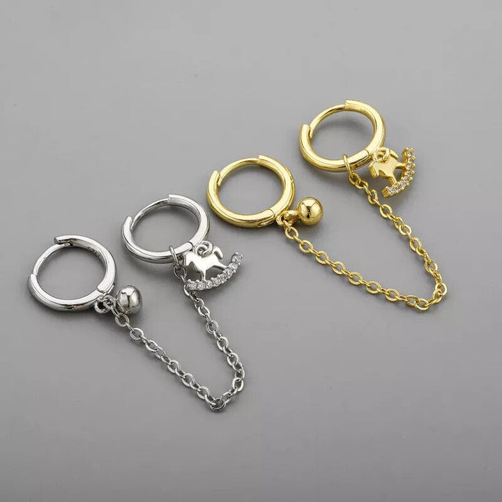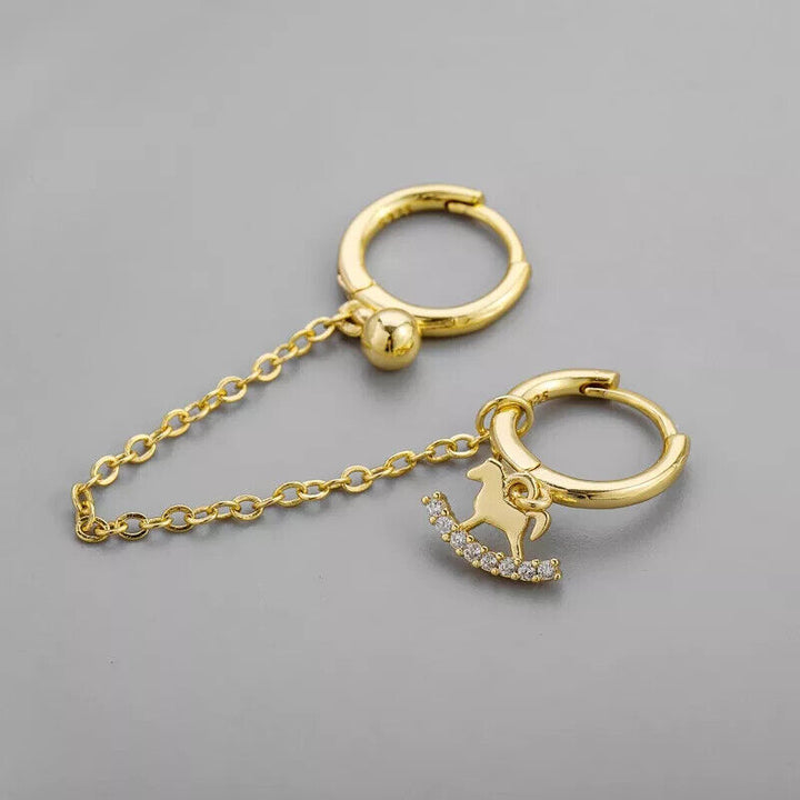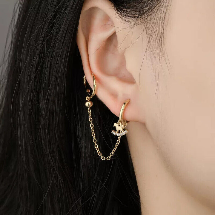 Pferd Ohrring für zwei Ohrlöcher mit Kette Silber 925 Stempel Damen Creolen