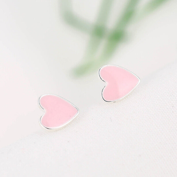 Pink Ohrringe Herz Sterling Silber 925 Damen Mädchen Ohrstecker