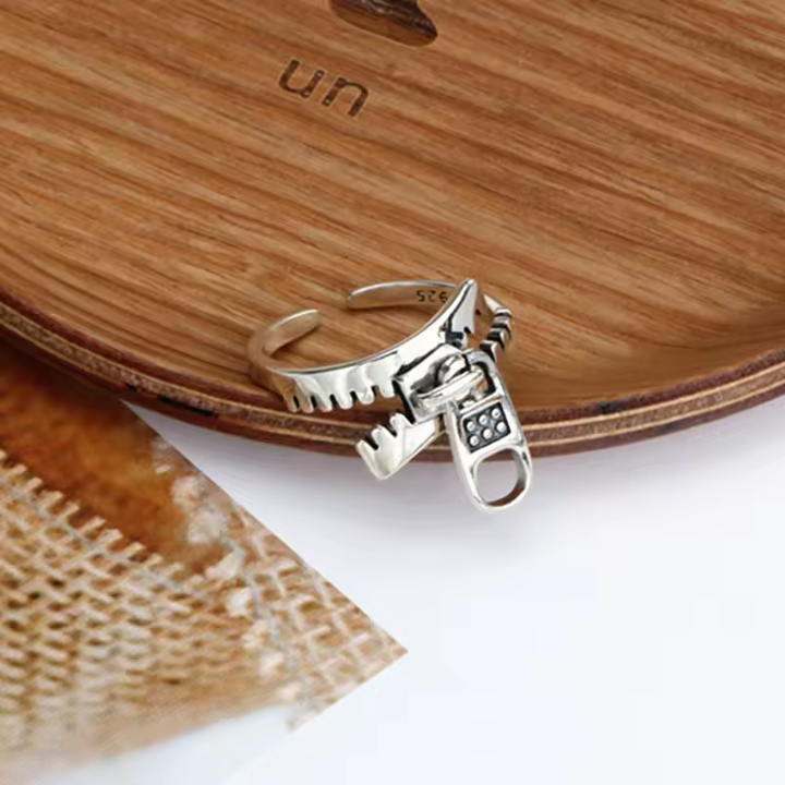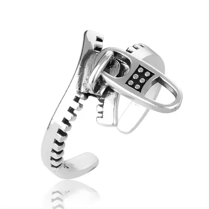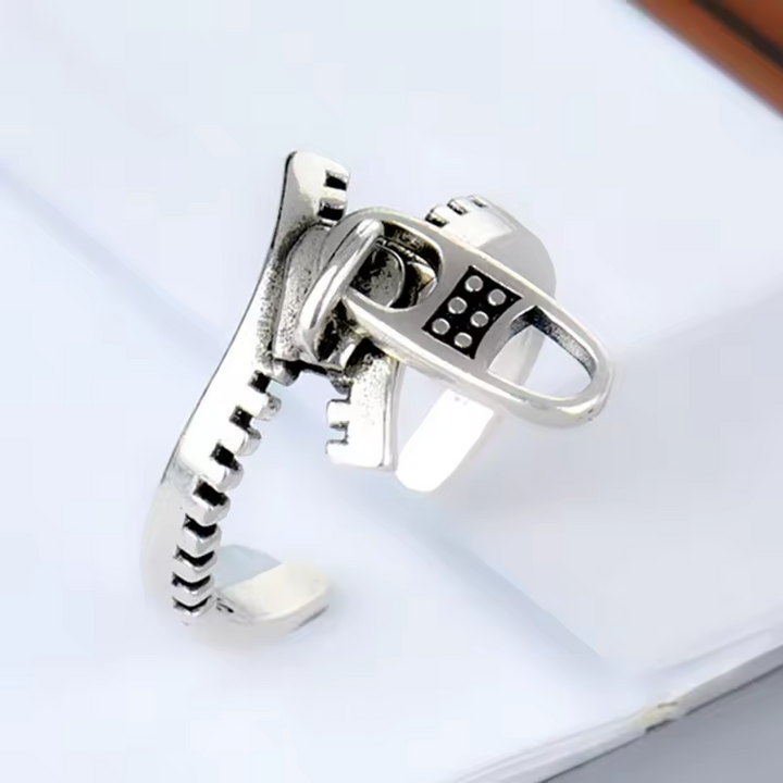 Reißverschluss-Ring 925er Silber im Cool-Fashion-Stil, größenverstellbar
