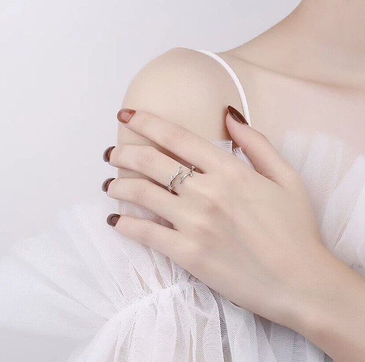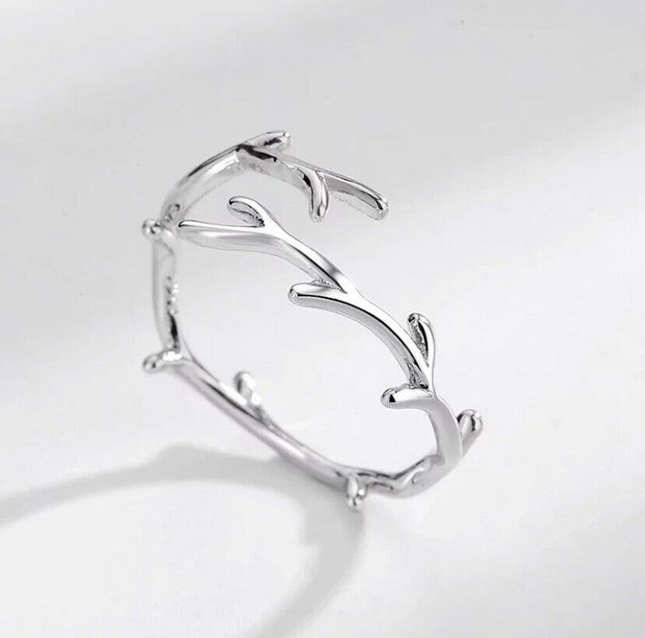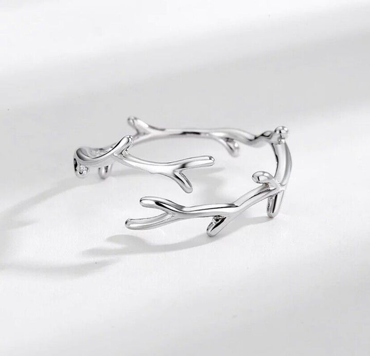 Ring Ast Blatt Sterling Silber 925 Damenring Anpassbar für alle Größen.