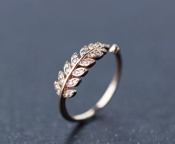 Ring Blatt Zirkonia Silber & Rosegold Damen Mädchen Größe Verstellbar