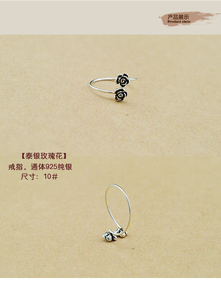 Ring Blume Vintage Sterling Silber 925 Größenverstellbar 48-53