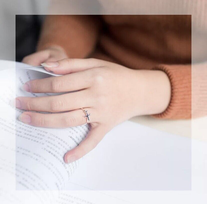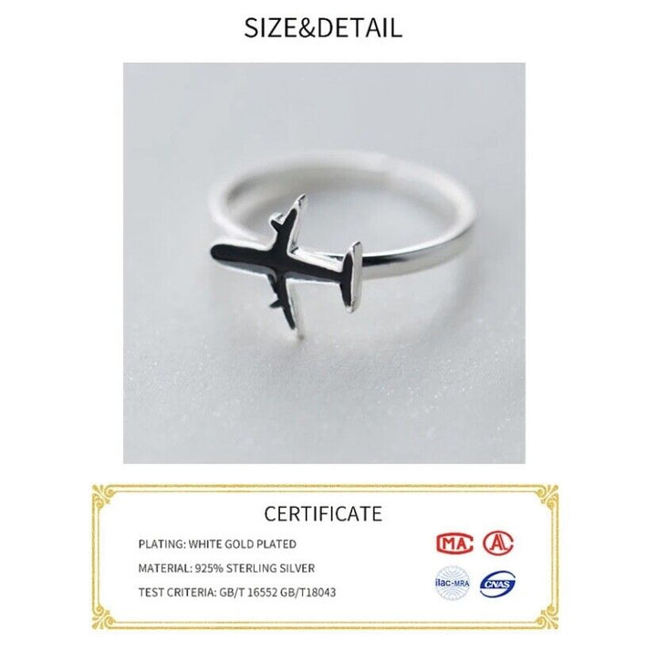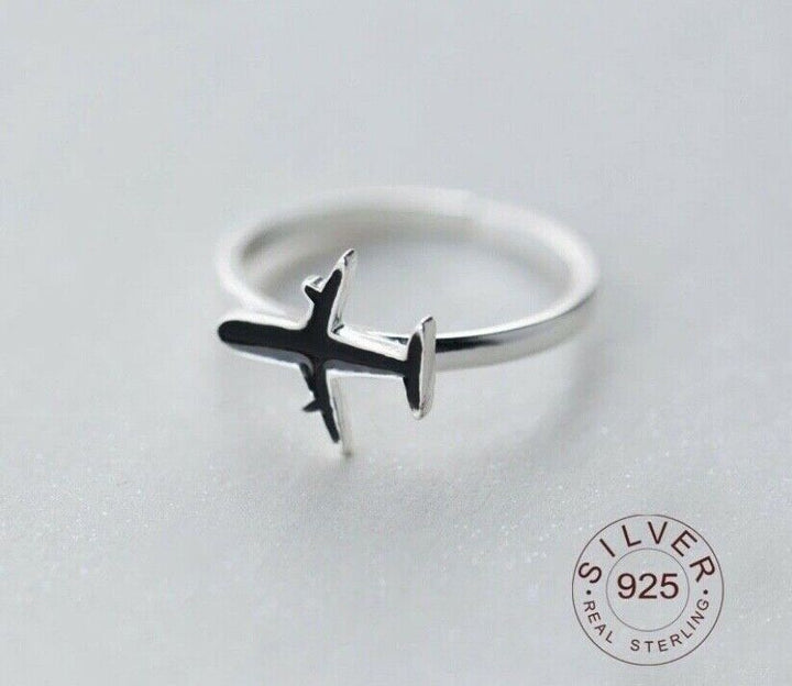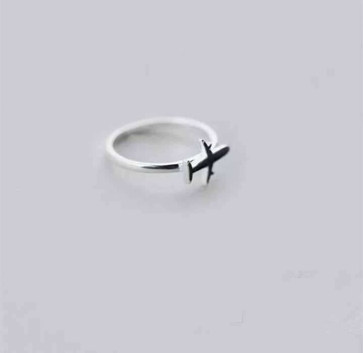 Ring Flugzeug verstellbar Urlaub Silber 925 Geschwärzt Damen offen