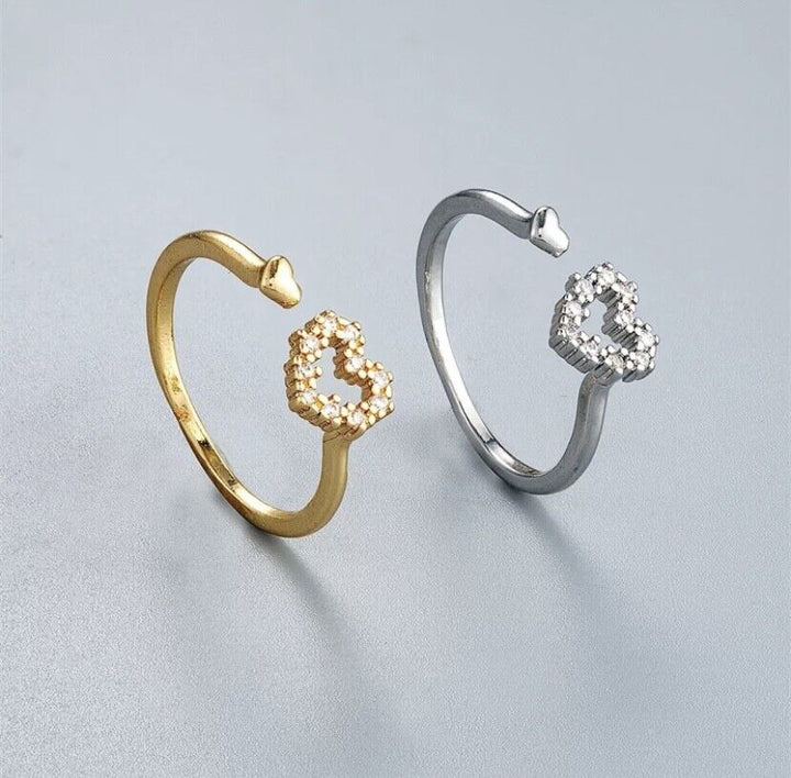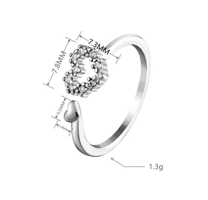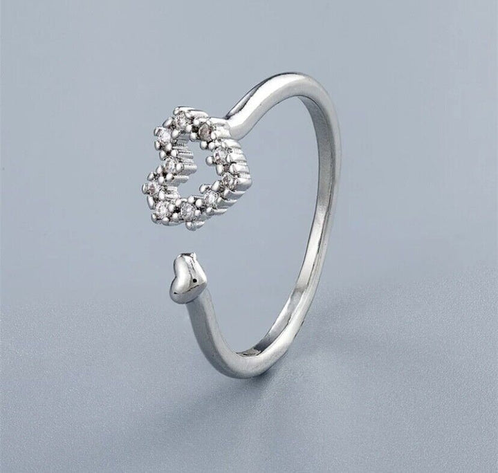 Ring Herz mit Zirkonia Damen Mädchen Silber 925 verstellbar 53-57