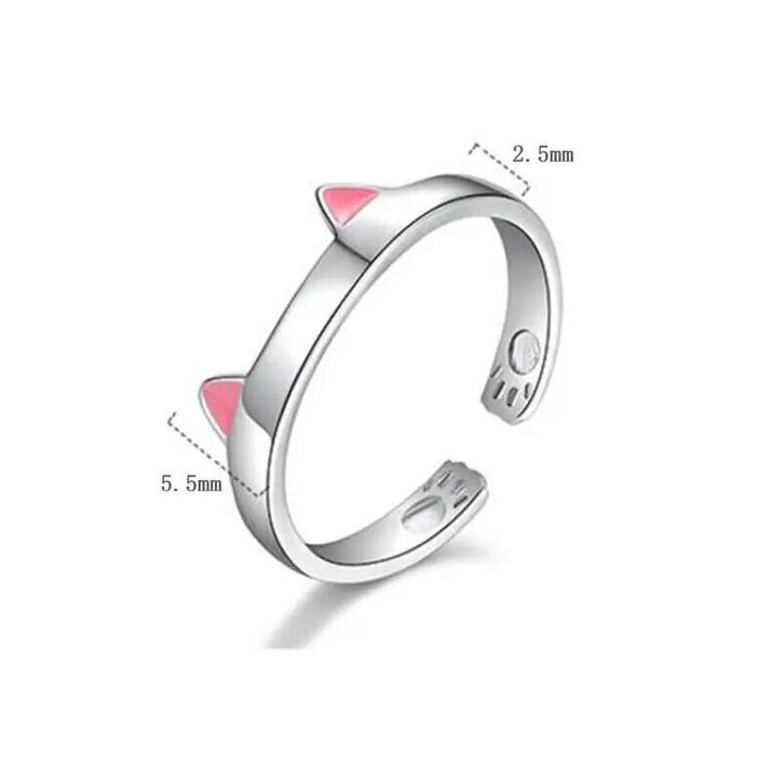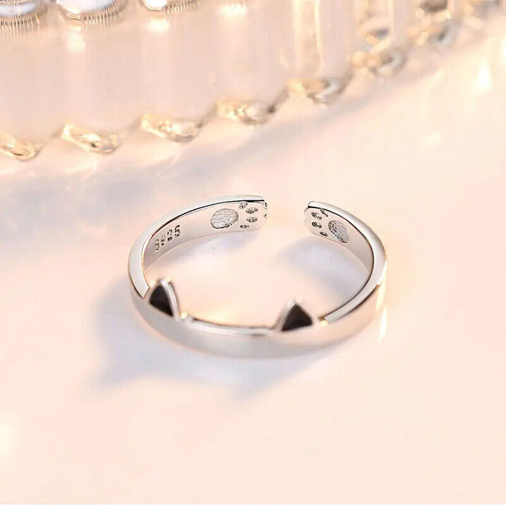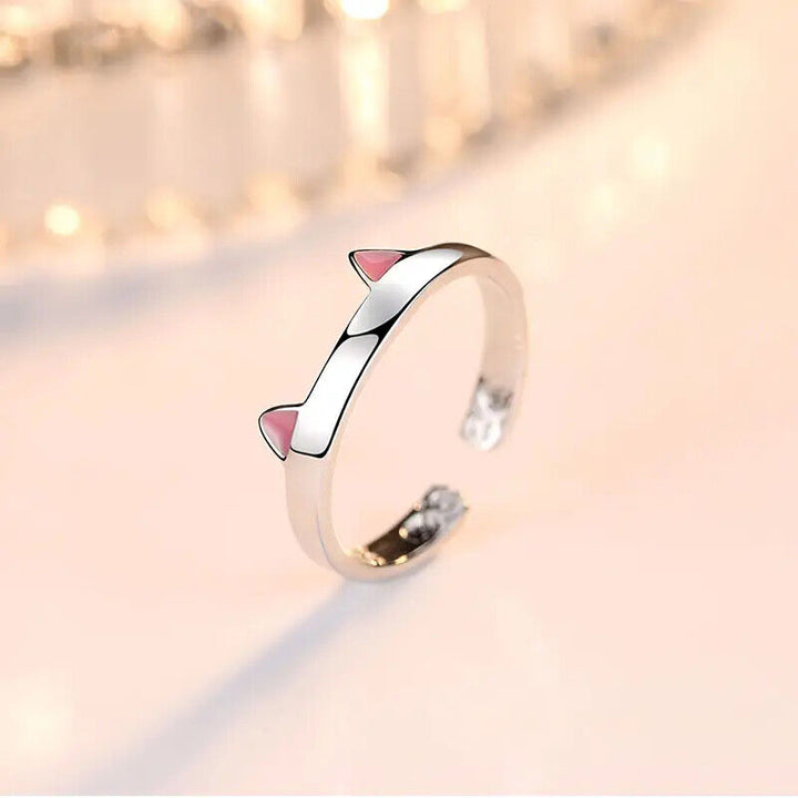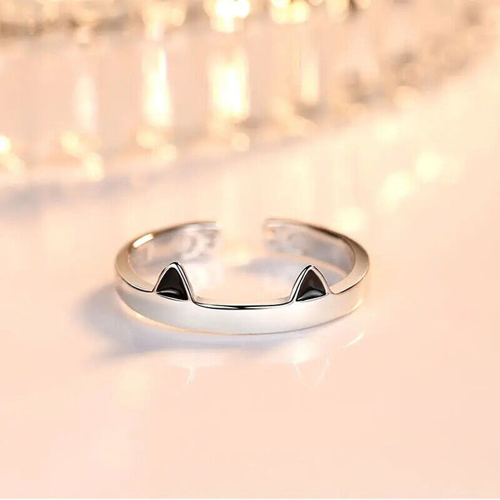 Ring Katze Katzenohren Silber 925 offen Damen Mädchen Anpassbar für alle Größen.