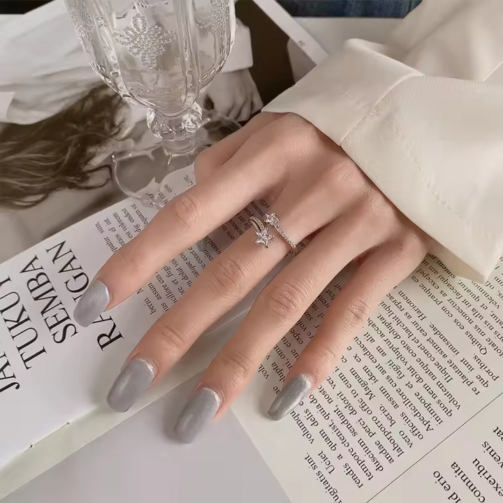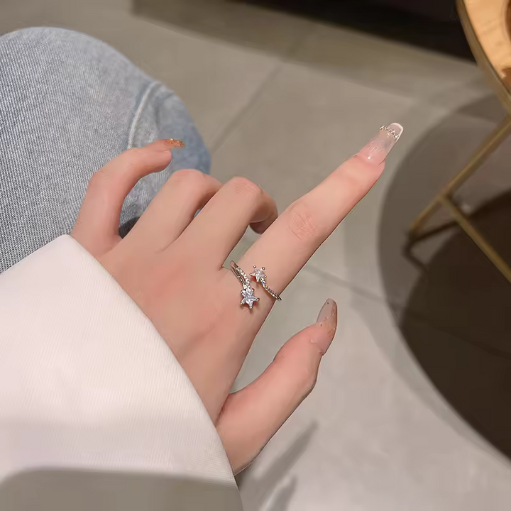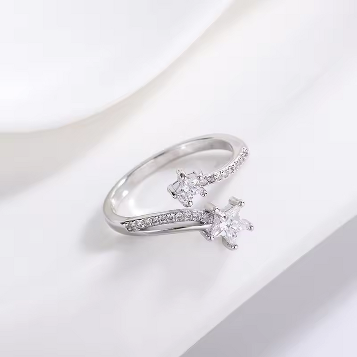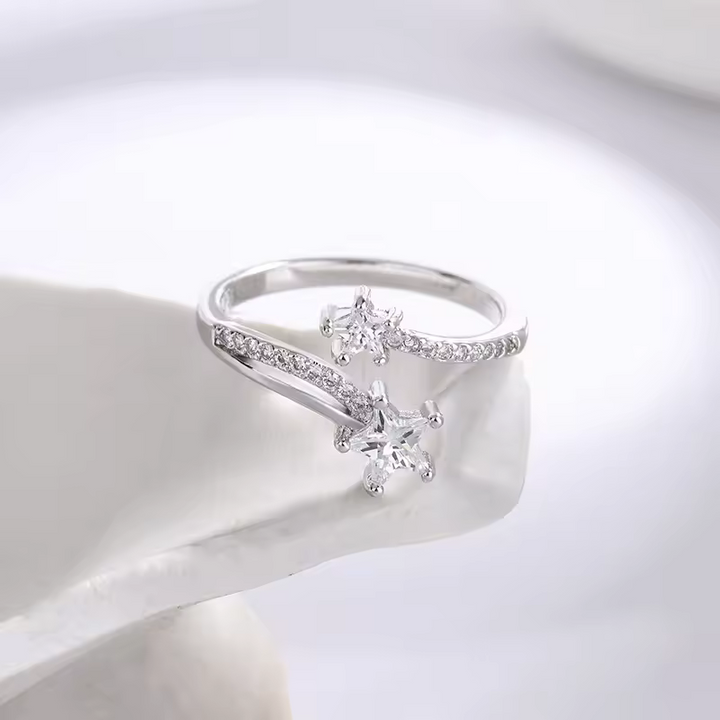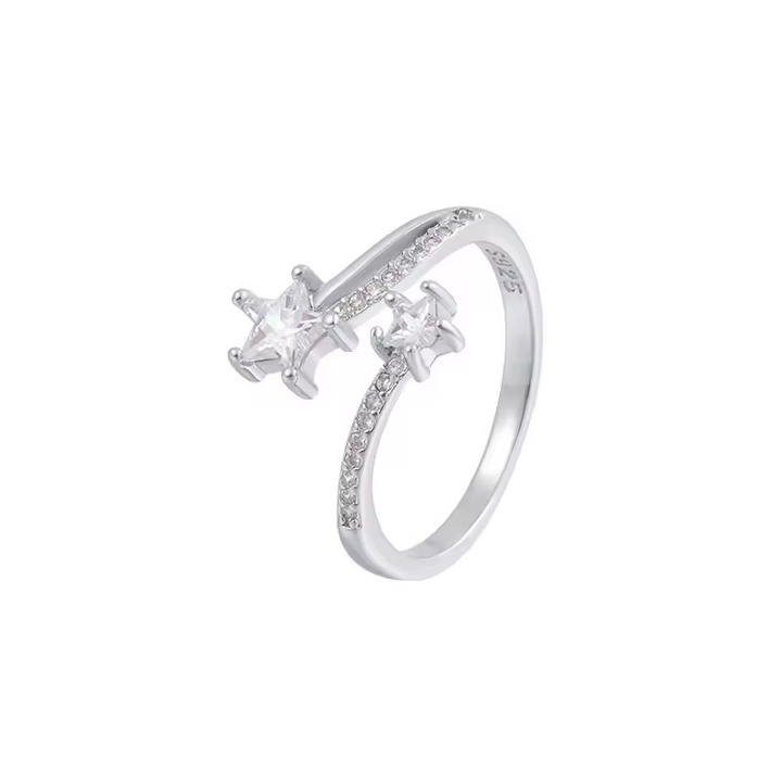 Ring m. Stern auf beiden Seiten, Silber 925, Zirkonia, Damenring, Größe wählbar
