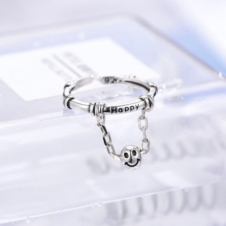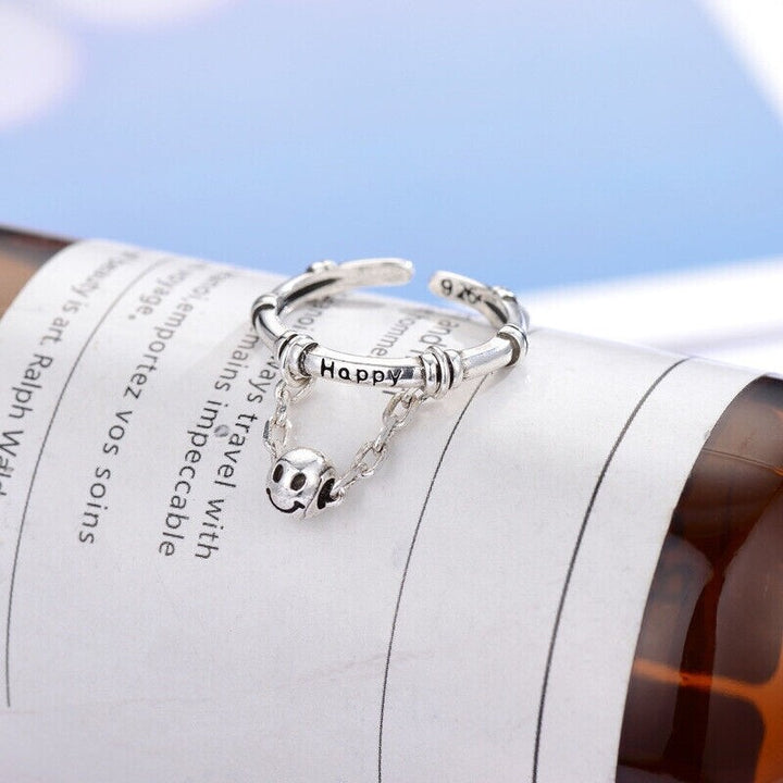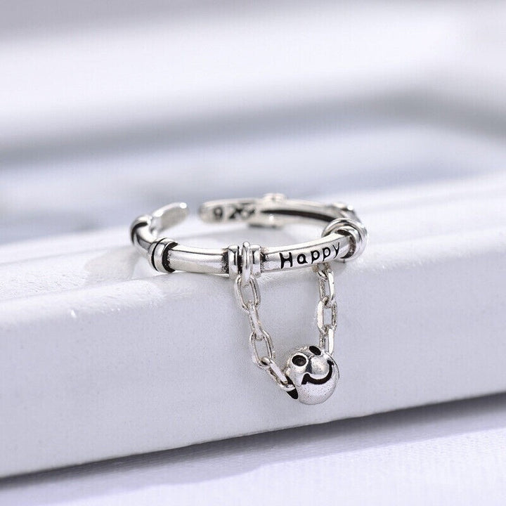 Ring mit Anhänger Glücklich Lachen Silber 925 verstellbar 51-54