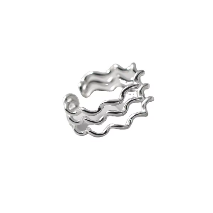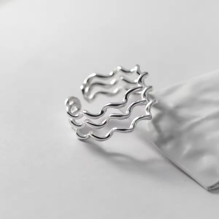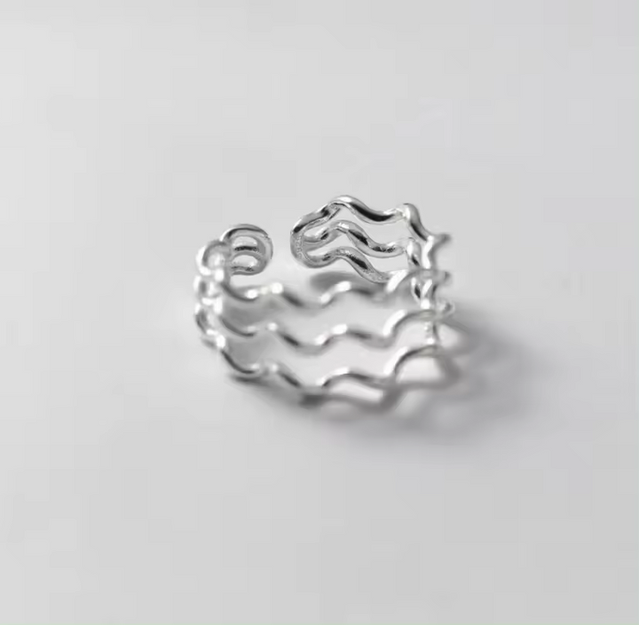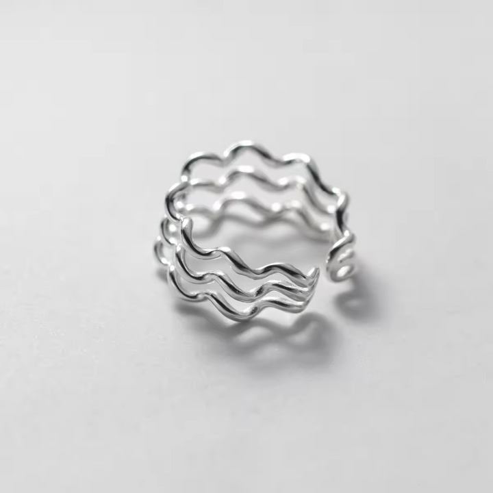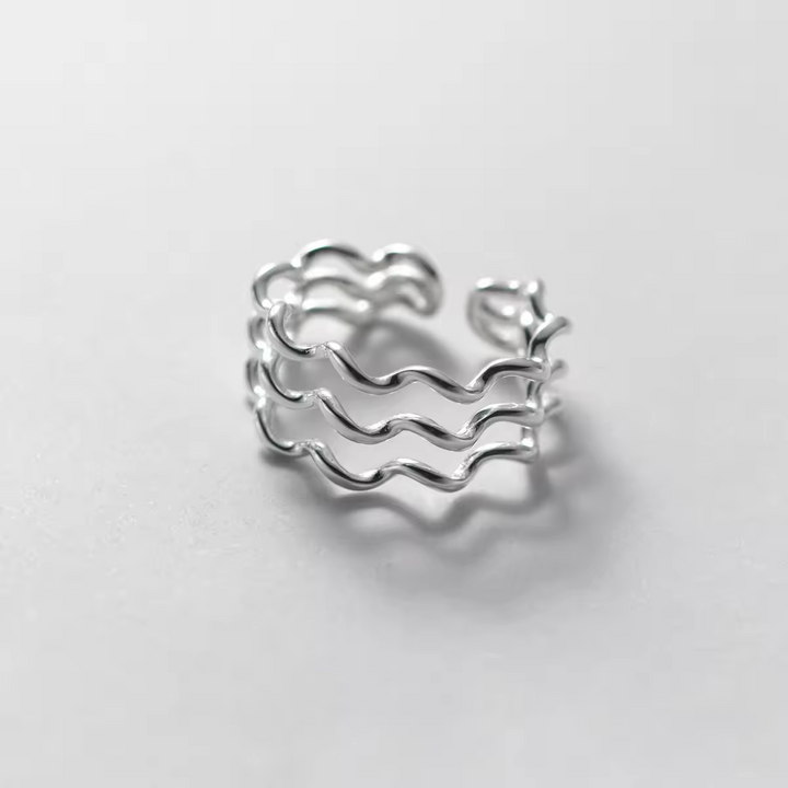 Ring mit drei glänzenden Zickzack-Reihen 925er Silber, größenverstellbar.