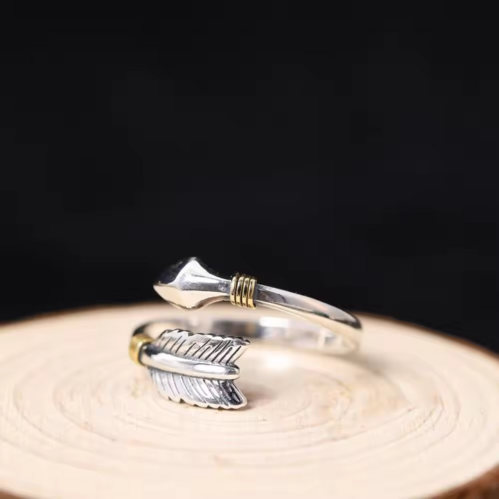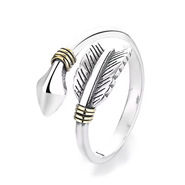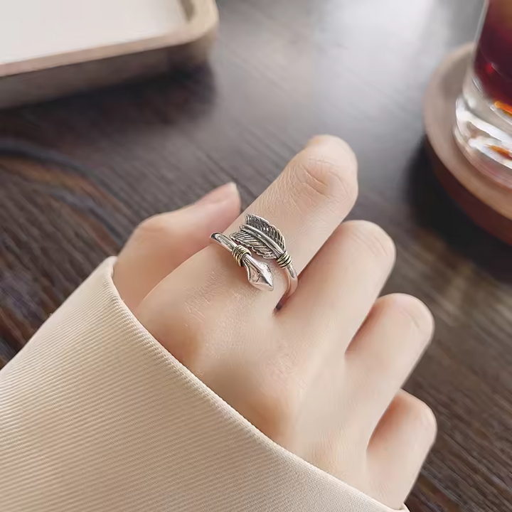 Ring mit Feder-Motiv aus 925er Sterling-Silber, geschwärzt und größenverstellbar
