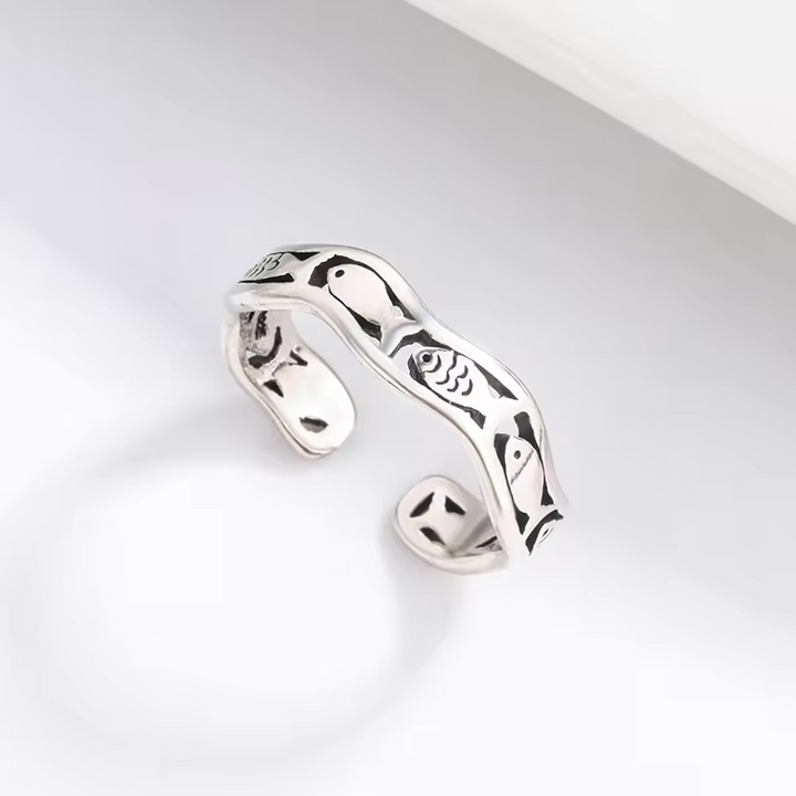 Ring mit Fisch-Motiv, Sterlingsilber 925, geschwärzt ,wählbare Größe.