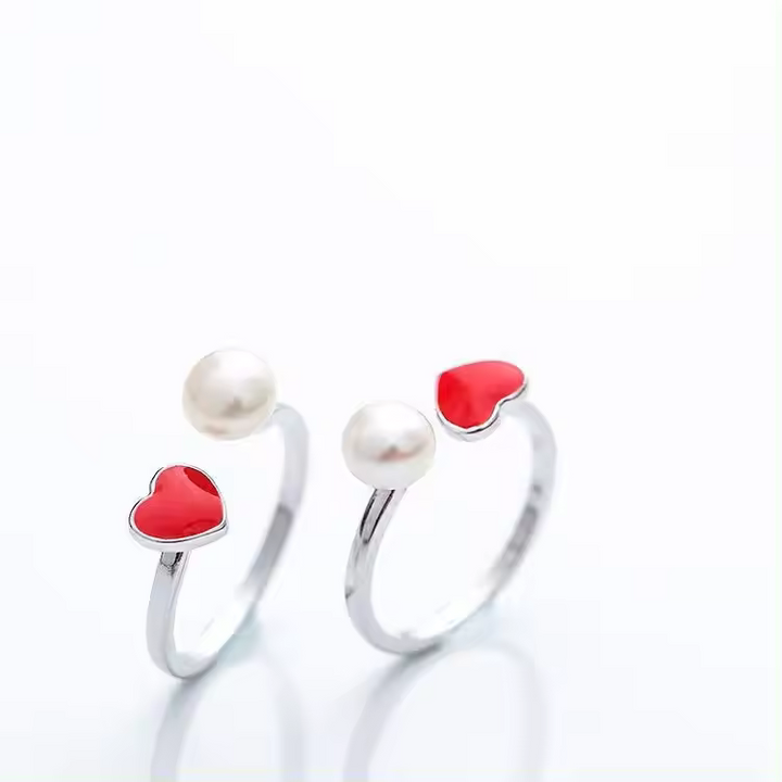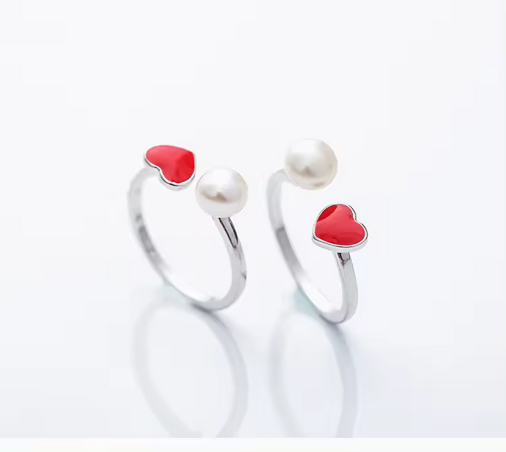 Ring mit Herz, größenverstellbar, Sterling Silber 925, mit Perle.