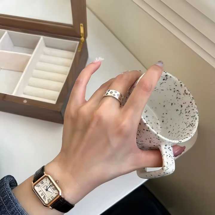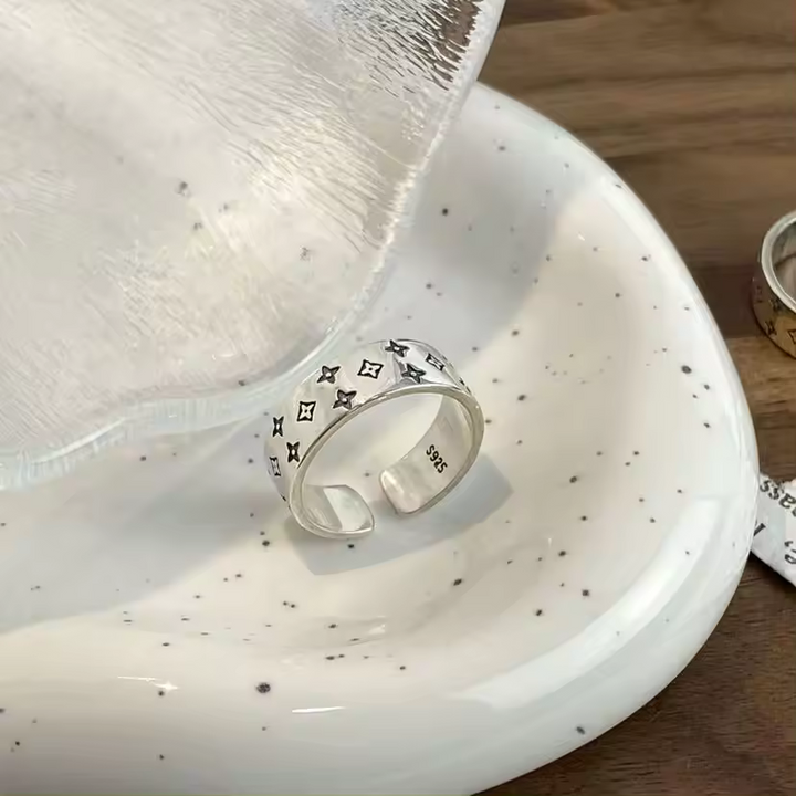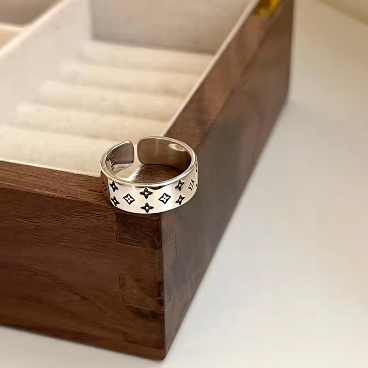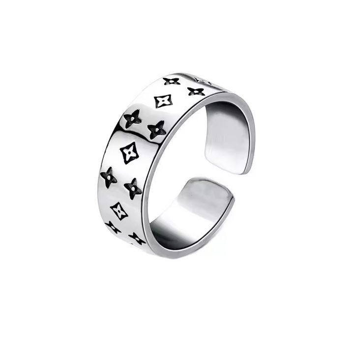 Ring mit schwarzem Motiv, Sterlingsilber 925, wählbare Größe.