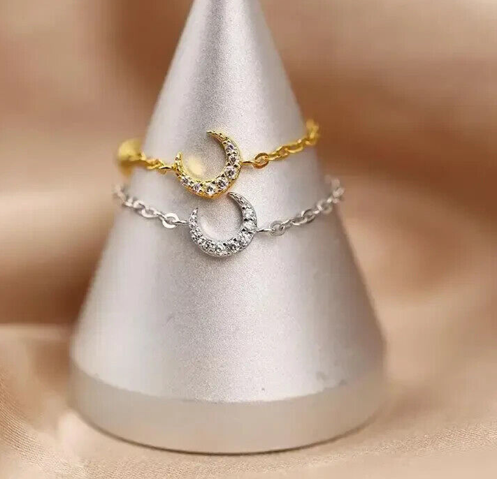 Ring Mond echt Sterlingsilber 925 Anpassbar für alle Größen.