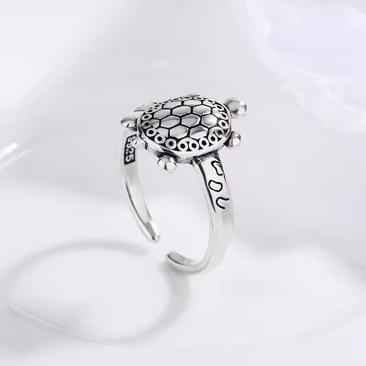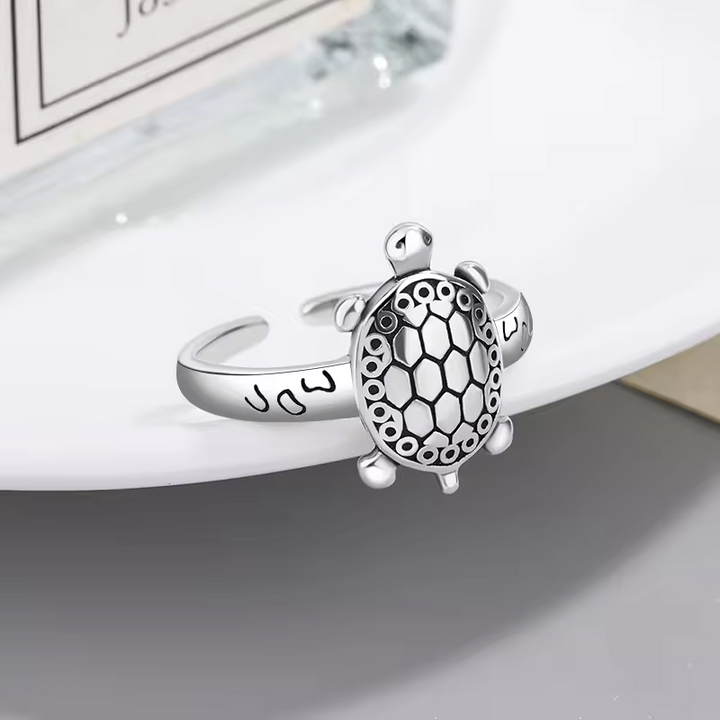 Ring Schildkröte Sterling Silber 925 Geschwärzt Damen offen größenverstellbar