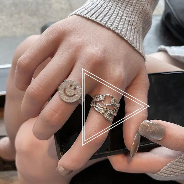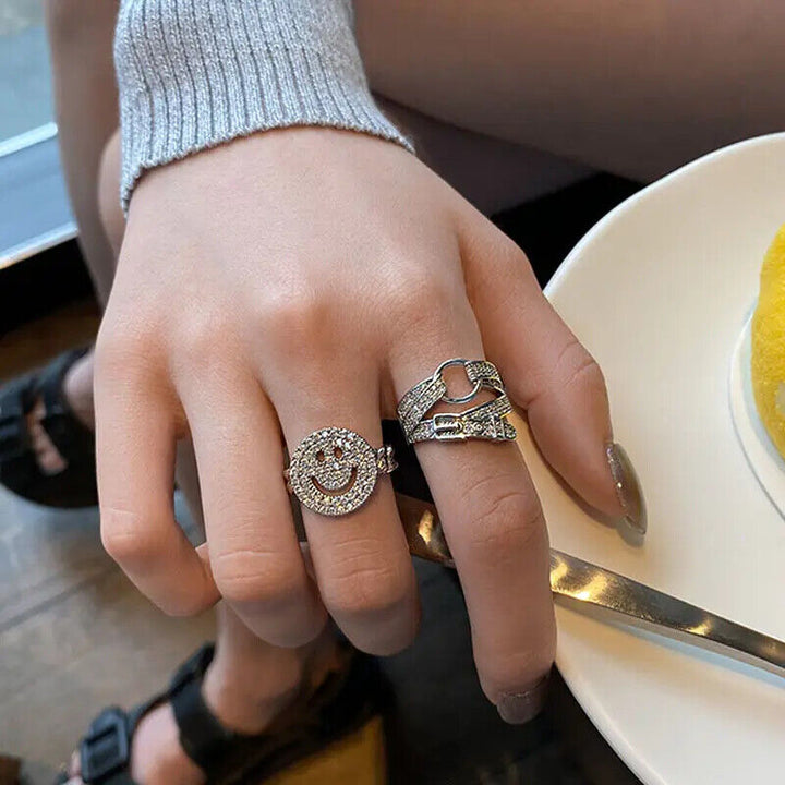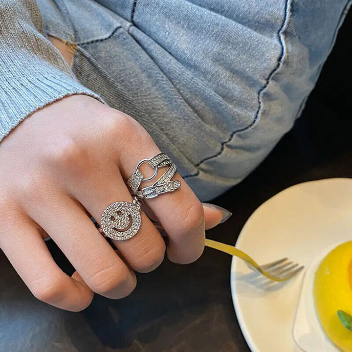 Ring smile Lachen Silber 925 Zirkonia Damen Größeverstellbar