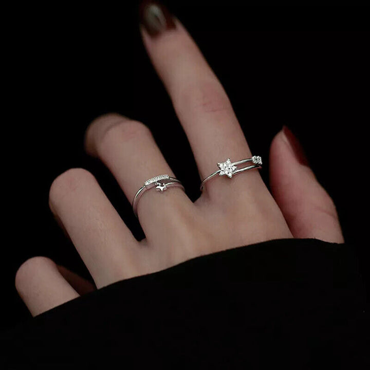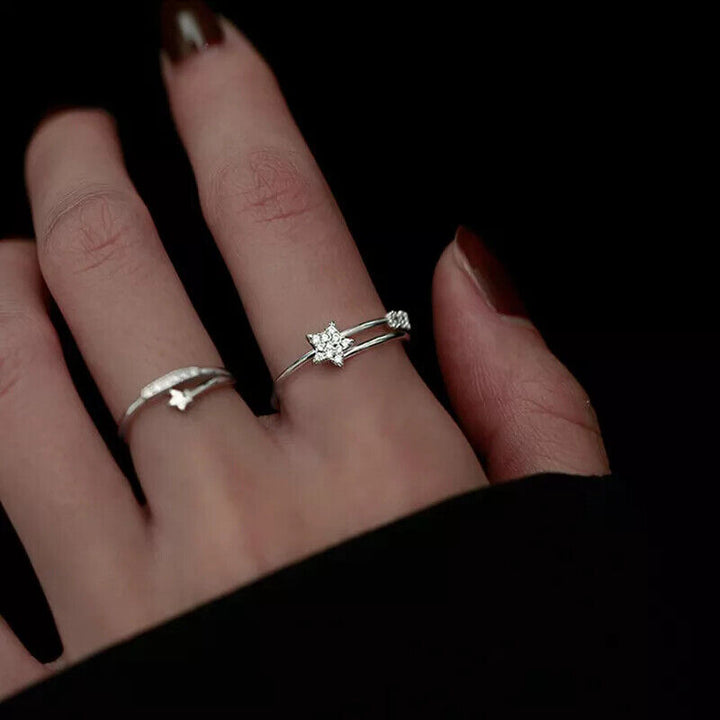 Ring Stern Sterlingsilber 925 verstellbar 48 - 55 mit Zirkonia Damenring