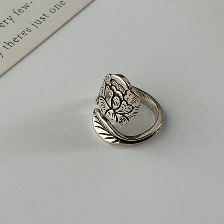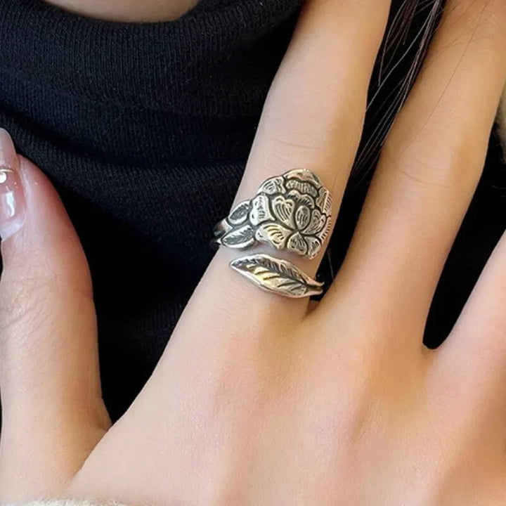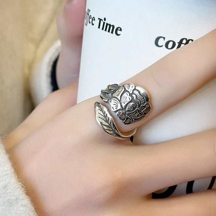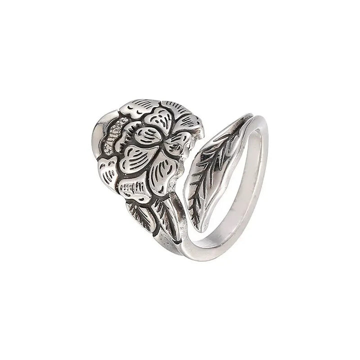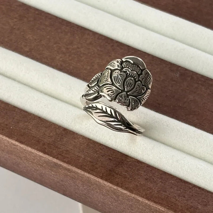 Vintage Blumen-Ring – Offenes Blattmotiv, 925 Silber