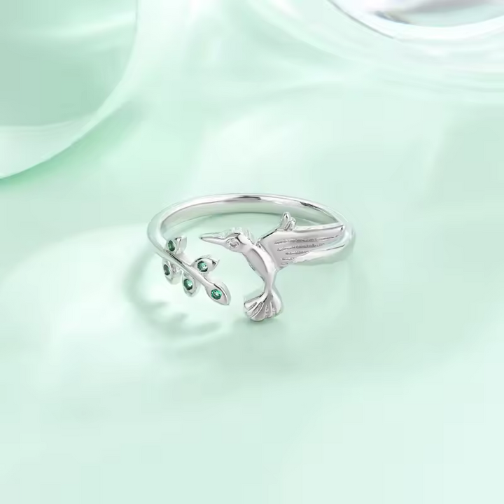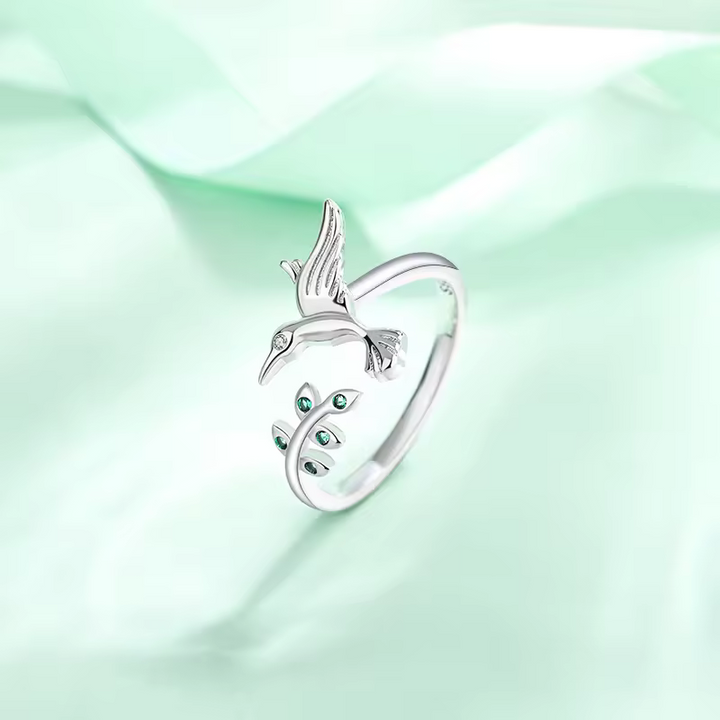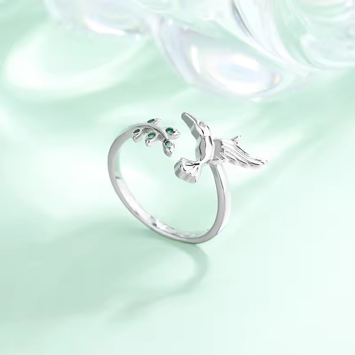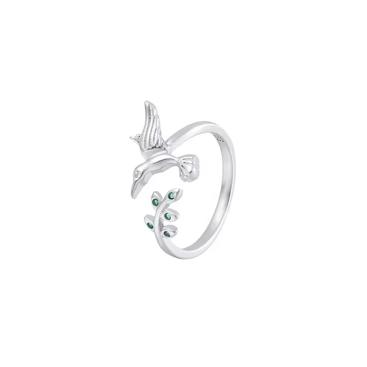 Ring Vogel echt Sterling Silber 925 Grüner Zirkonia Anpassbar für alle Größen