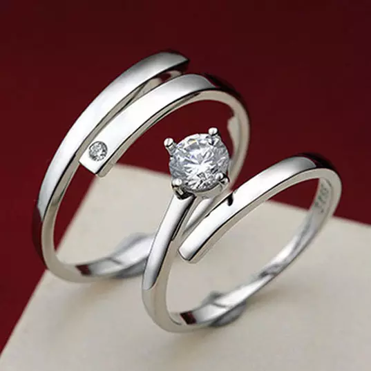 Ring Zwei Partnerringe Sterling Silber 925 mit Zirkonia verstellbar 50-55